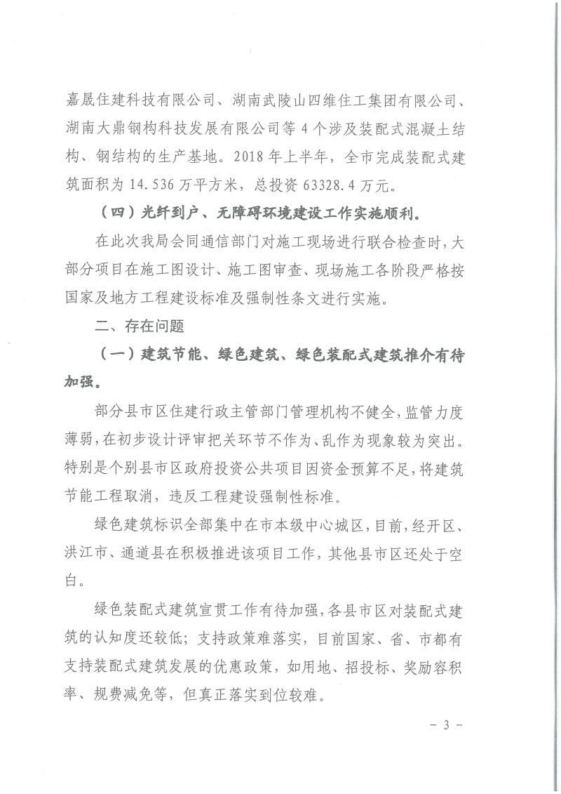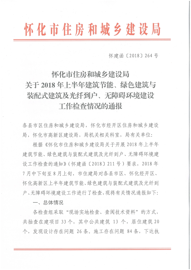 关于2018年上半年建筑节能、绿色建筑与装配式建筑及光纤到户、无障碍环境建设工作检查情况的通报