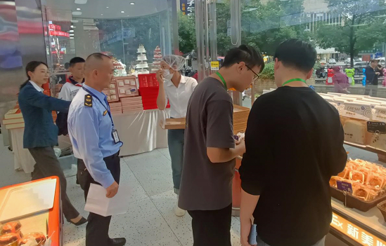 洪江区:近日,洪江区市场监督管理局在辖区开展节前食品安全、商品过度包装及价格行为专项检查,旨在让消费者买得放心,吃得安心。执法人员深入食品生产企业,从源头把控食品安全,开展节日热销食品专项抽检,督促市场主体落实食品安全主体责任,强化从源头到货架的全程监管,筑牢全链条防线;聚焦月饼“身份、出身、身价”,严查“三无”“过期”及过度包装行为,严厉打击哄抬物价、缺斤短两等损害消费者利益的行为。本次专项行动期间,共出动执法人员70余人次,共检查各类食品生产经营单位30余家、开展食品安全抽检12批次,对检查中发现的问题均已责令整改到位。(洪江区局 向丽萍)