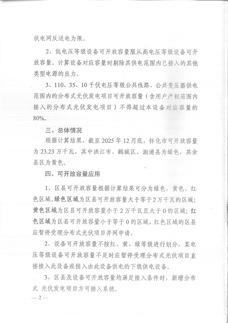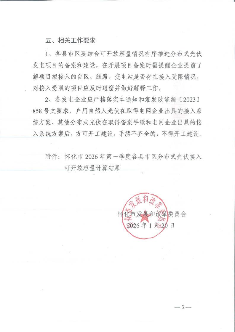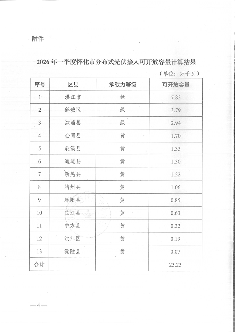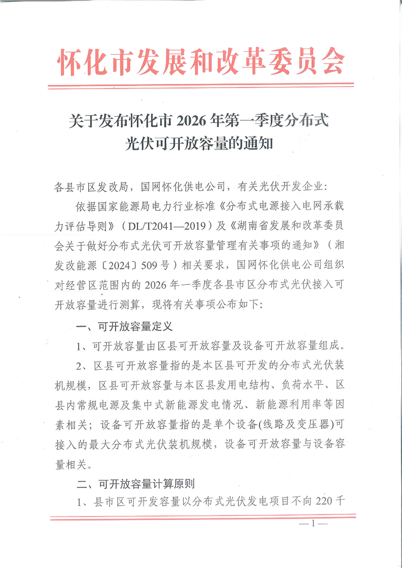 关于发布怀化市2026年第一季度分布式光伏可开放容量的通知