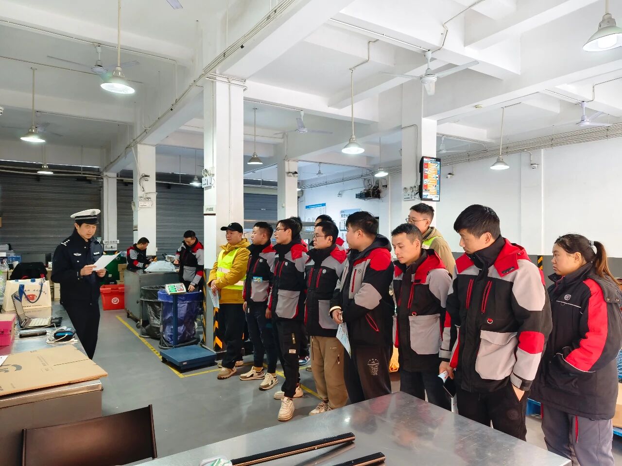 国际陆港大队走进顺丰快递开展“文明交通 礼行天下”宣传,结合行业特点讲解交通安全知识;