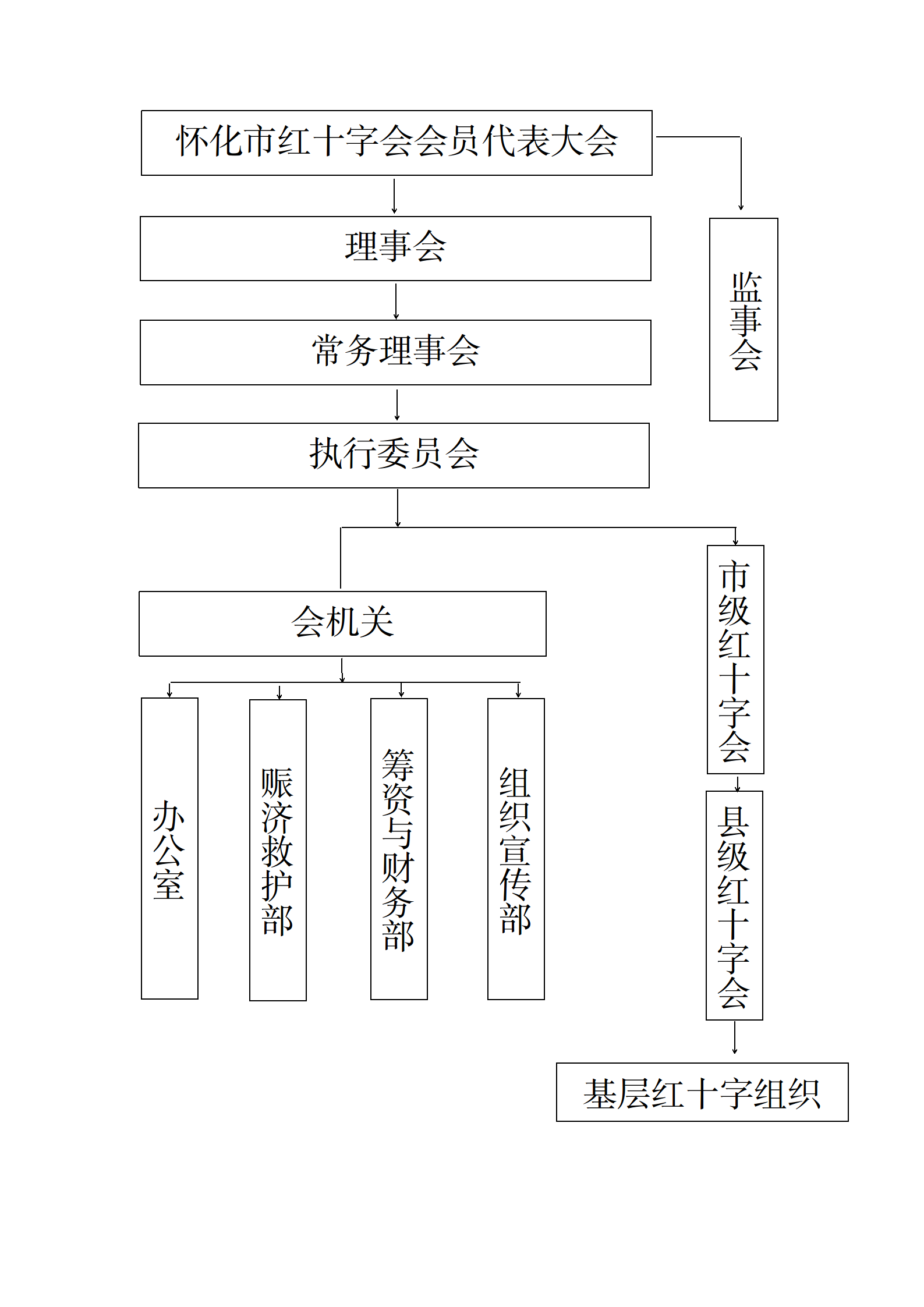 怀化市红十字会内设办公室、赈济救护部、筹资与财务部、组织宣传部4个部室,无直属机构。