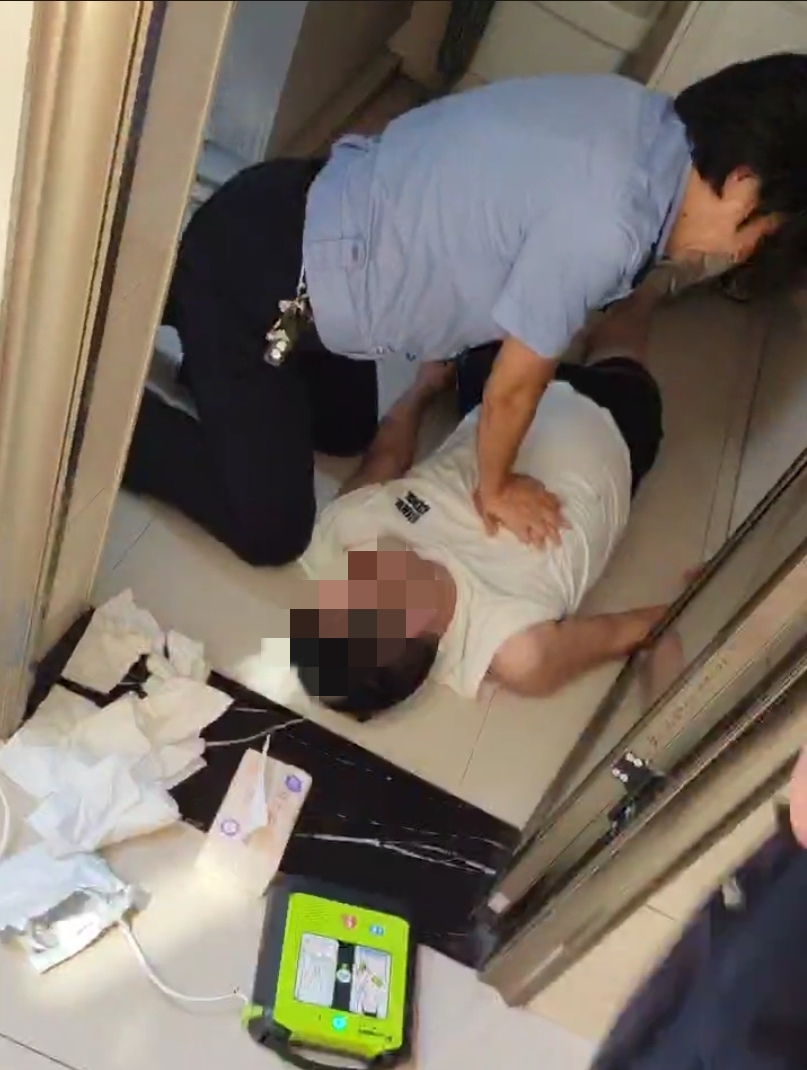 10月9日中午11时许,怀化市鹤城区城北街道中坡社区警务室老杨体感不适,在社区卫生间晕倒被同事发现,当时他突发心搏骤停,情况十分危急。接受过红十字应急救护培训的社区民警黄莉在同事们的帮助下,立即对老杨实施心肺复苏,并使用设置在怀化市中坡社区红十字应急救护智能化培训基地的自动体外除颤器(AED)对老杨进行急救,在医护人员赶到现场前进行了一场分秒必争的生死救援,为老杨赢得了宝贵的“黄金4分钟”。随后120救护车抵达现场,目前老杨已被医护人员转移至附近医院开展进一步检查治疗。