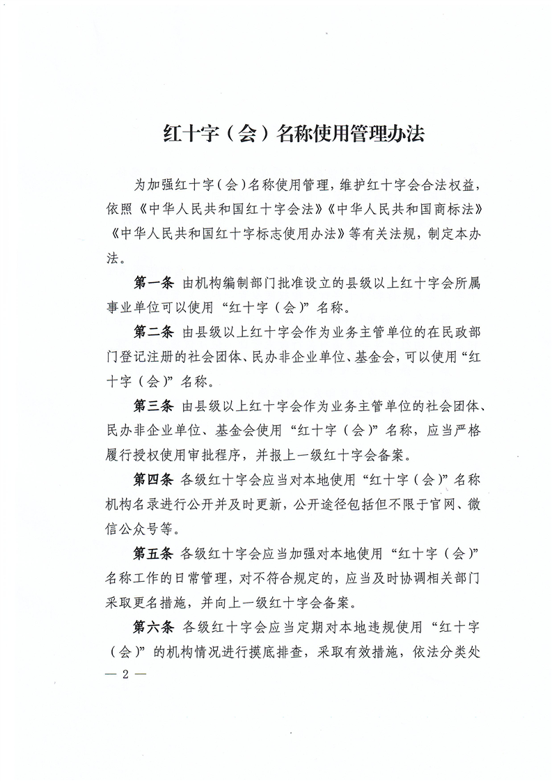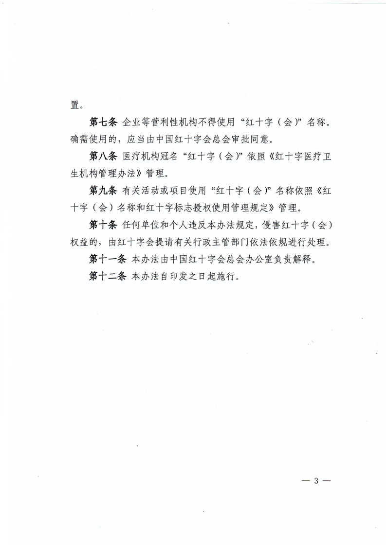 中国红十字会总会办公室关于印发《红十字(会)名称使用管理办法》的通知