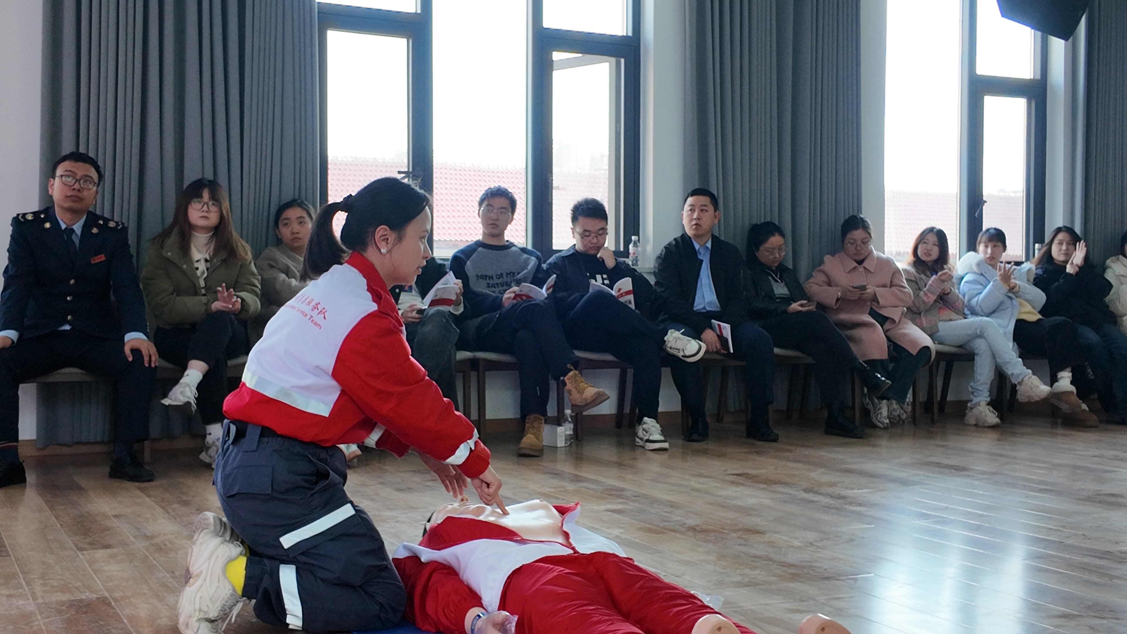 本次培训主要包括红十字运动知识宣讲、救护概论、心肺复苏、创伤救护等内容。红十字救护师资采取理论讲解与案例解析相结合的方式,系统讲授心肺复苏、自动体外除颤器(AED)使用、创伤包扎等应急救护知识,并借助“模拟人”教具分组进行模拟练习和考核。最终理论笔试与实操考核合格者,可获得红十字救护员证。
