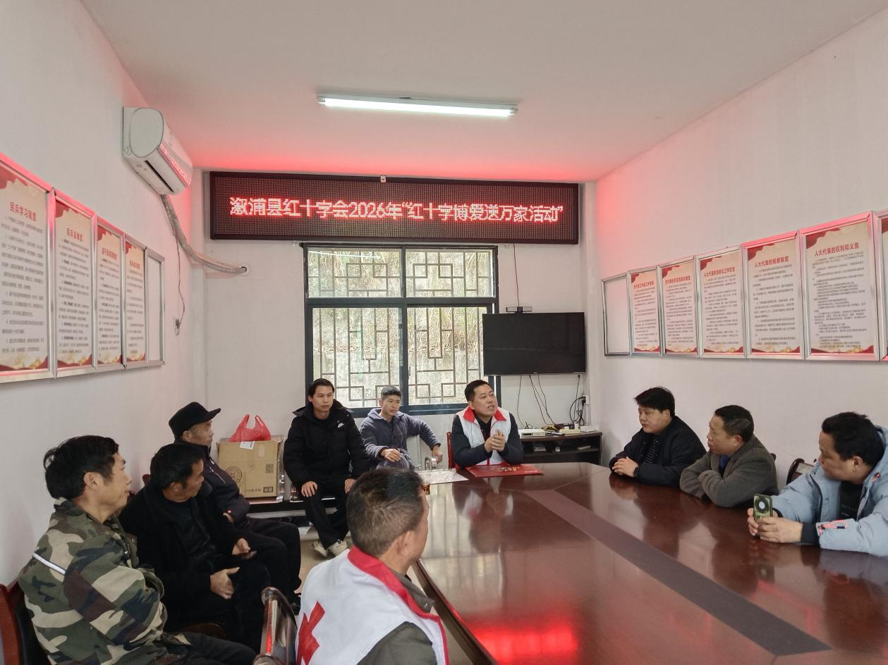 近日,溆浦县红十字会组织开展2026年度“红十字博爱送万家”活动,为该县北斗溪镇、祖市殿镇等多个乡镇的困难群众送去节日的关怀与温暖。活动通过发放慰问金、生活物资及春联、日历等节日礼品,传递党和政府以及社会各界对困难群体的深切关爱,助力他们度过一个温馨祥和的新春佳节。