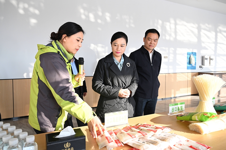(12月5日下午,市委副书记、代市长韦朝晖在中方县调研。图为韦朝晖在怀化天天食品科技有限公司详细了解农副产品精深加工与东盟市场拓展等情况。怀化日报全媒体记者 吴涛 摄)