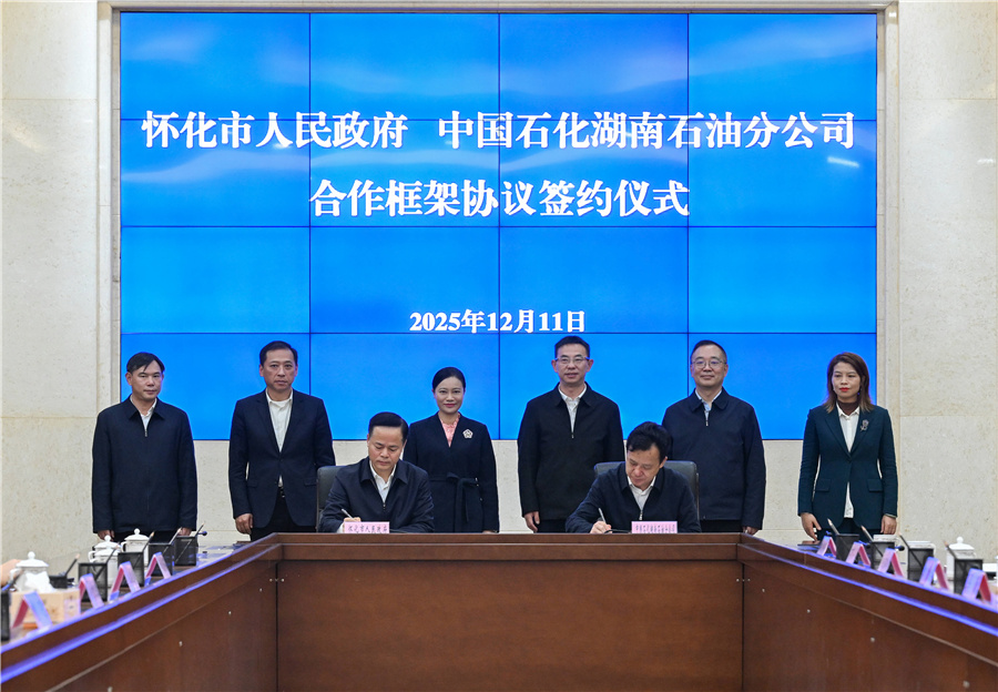 (12月11日下午,市政府与中国石化湖南石油分公司签署合作框架协议。怀化日报全媒体记者 吴涛 摄)