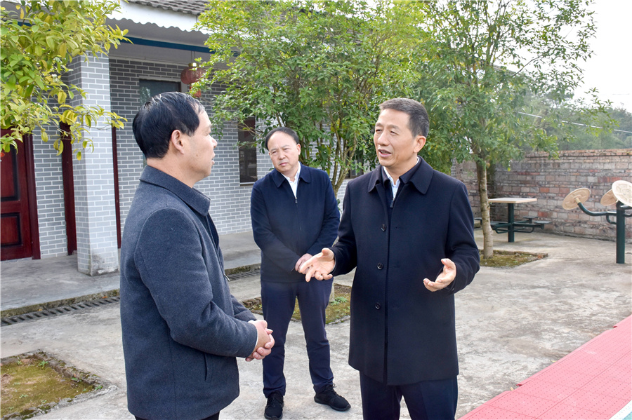 在凉伞镇黄雷村黄雷寨,许忠建了解和美乡村建设情况,并与农民群众座谈交流。他指出,要充分发挥群众主体作用,引导群众积极参与庭院美化、环境整治,深入实施文明乡风建设工程,持续推进农村移风易俗,培育时代新风新貌。