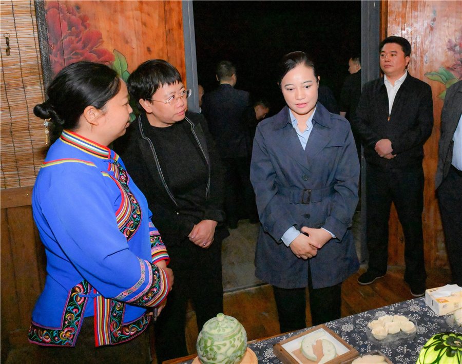 (10月19日,市委副书记、市政府党组书记韦朝晖到靖州调研。图为韦朝晖在靖州知青园调研雕花蜜饯非遗项目。怀化日报全媒体记者 潘雨 摄)