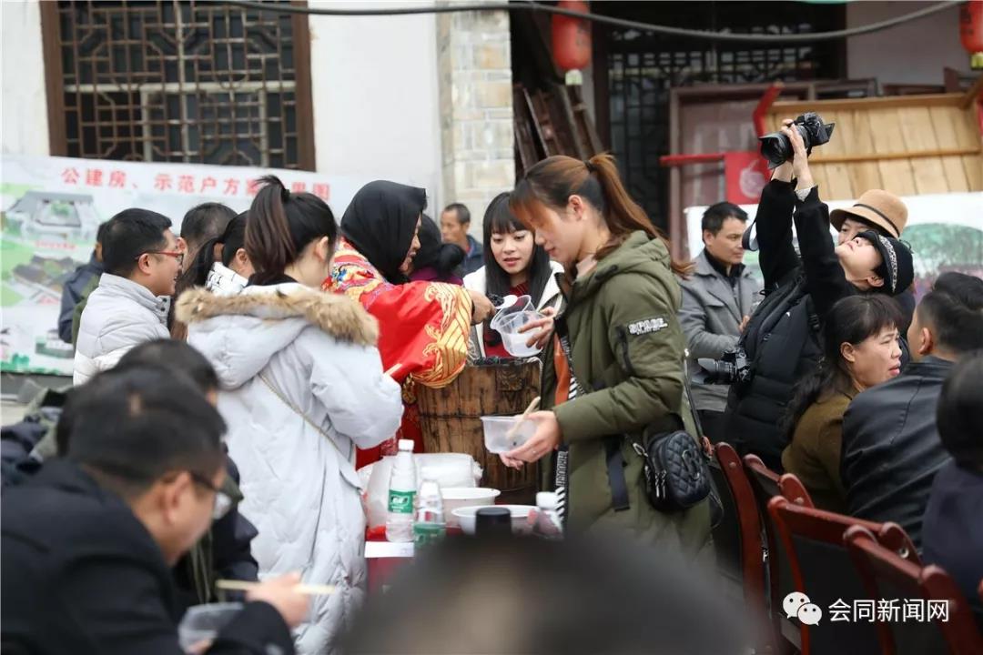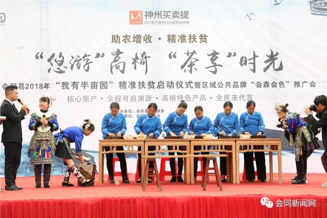 古法“黑饭”嘉宾试吃、黑泡茶制作传人现场“秘技”比试,古村历史故事讲解演绎,侗族神秘傩戏歌舞表演……11月26日,以“‘悠游’高椅 ‘茶’享时光”为主题的会同县2018年“我有半亩园”电商产业精准扶贫启动仪式暨区域公共品牌“会森会色”推广会在高椅古村旅游景点广场举行,一出出“古色古香”的“高椅好戏”在网红直播的镜头下精彩上演。