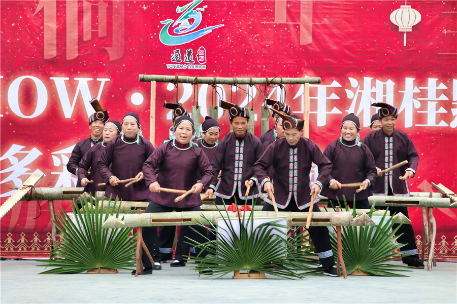 11月23日,通道坪坦乡皇都村侗年节上演“非遗秀”,赢得游客阵阵掌声。当地让非遗融入生活,传承非遗“活”起来,吸引更多游客了解通道,走进侗乡。