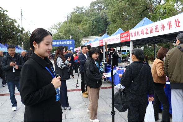 一、打造“多元立体”宣传矩阵,推动政策精准直达。针对基层群众政策知晓度不高、获取渠道单一等问题,坚持“线下深耕+云端赋能”双向发力,构建多维度、广覆盖、高效率的传播体系,推动服务模式从“人找政策”转向“政策找人”,让政策红利精准滴灌基层末梢、惠及群众一线。一是嵌入生活场景,让政策听得懂、用得上。一方面依托全市“社保服务进万家”、市广播电视台“为民热线”进社区等品牌活动,搭建宣讲平台,聚焦就业创业、社保、医保等重点民生领域,面对面向群众宣政策、讲要点、说流程;另一方面抓住乡镇传统“赶集”人流密集的有利契机,在集市设立咨询台、发放宣传册,重点宣传反诈知识、居民养老、医保缴费等高频政策,用通俗语言详细解答参保缴费、待遇领取、报销流程等关切问题,让抽象政策变得具象可感、易懂好操作。二是借力多元媒介,让政策传得广、送得快。构建“政府网站+政务直播+微信公众号+视频号”线上宣传矩阵,通过直播互动答疑、短视频分步演示、图文解读等形式,全方位普及政策知识、讲解办事流程、回应群众诉求,实现线上实时答疑、信息随时可查,切实打通政策宣传“最后一米”。10月以来,开展“政务服务下基层”活动7次,今年累计开展“政务直播”83场,制作发布短视频50条,提供在线解答服务近3000余人次。