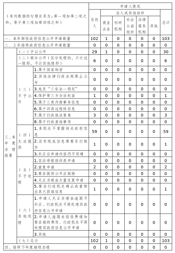2025年,本机关严格依照《条例》开展工作,坚守“公开为常态、不公开为例外”原则,规范依申请公开全流程管理。全年共接收政府信息公开申请103件,其中自然人申请102件、法人或其他组织申请1件,申请内容集中于物业组建信息、征拆项目信息、居委会组建资料等民生领域;办理结果中予以公开29件、部分公开6件、不予公开4件、无法提供60件、不予处理3件,所有申请均在法定期限内规范答复,时效性和规范性显著提升。行政复议与行政诉讼方面,全年因政府信息公开工作被申请行政复议42件,经审理维持4件、纠正2件、申请人撤回31件,未审结5件,针对复议纠正问题已及时整改;发生相关行政诉讼案件3件,含未经复议直接起诉1件、复议后起诉2件,所有案件均依法应诉。下一步,本机关将根据行政复议和行政诉讼暴露的问题,进一步优化政府信息公开申请办理流程、细化公开标准,持续提升政府信息公开工作规范化水平。