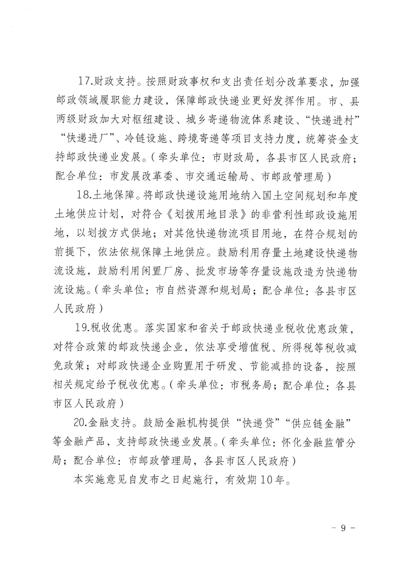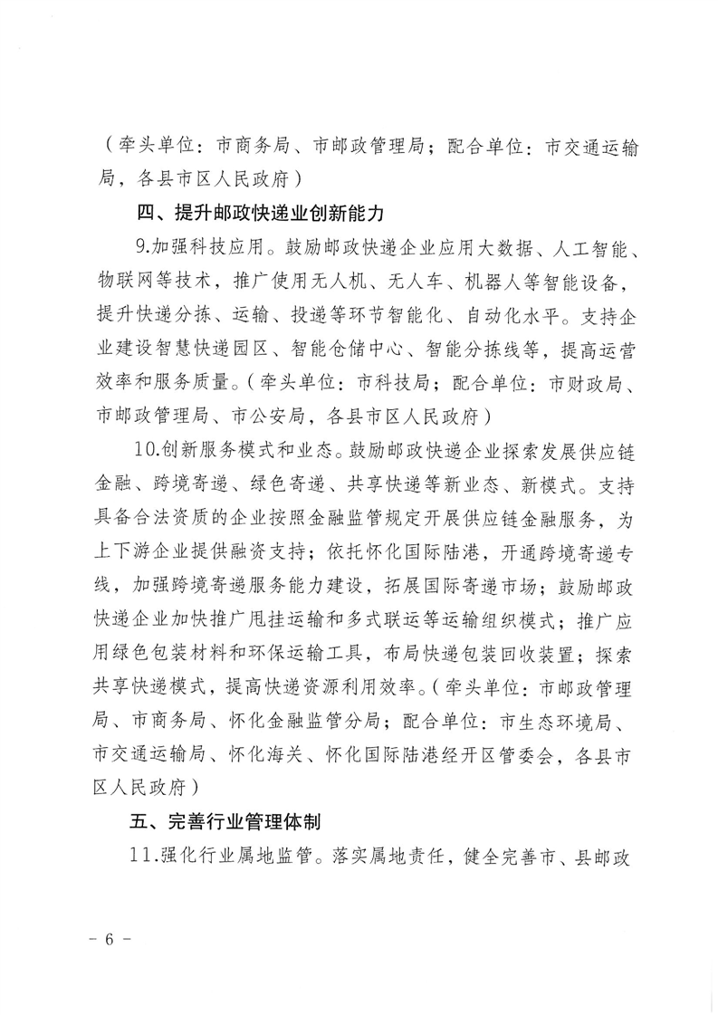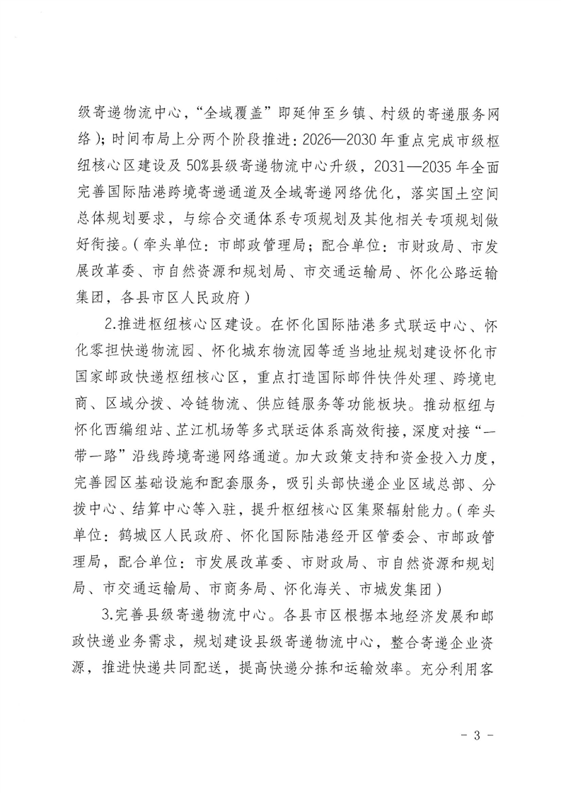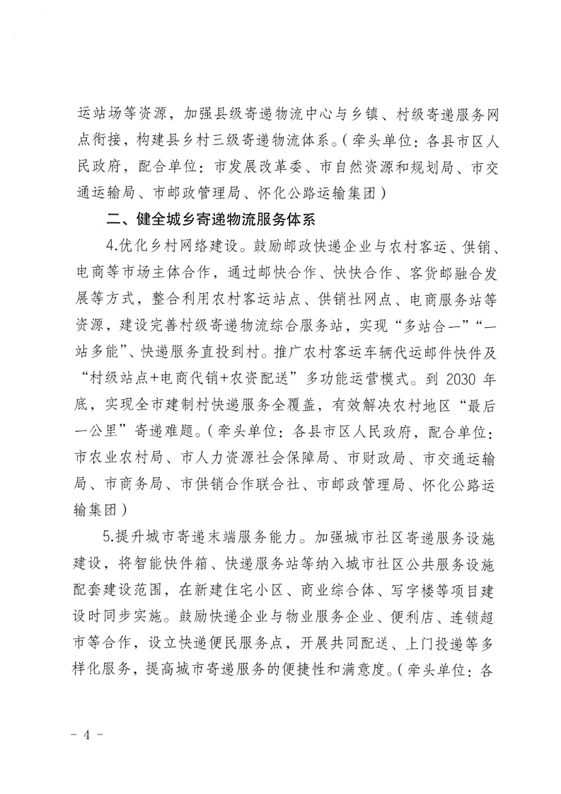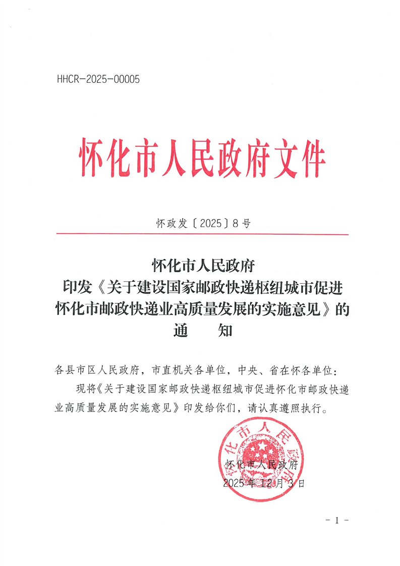 怀化市人民政府印发《关于建设国家邮政快递枢纽城市促进怀化市邮政快递业高质量发展的实施意见》的通知
