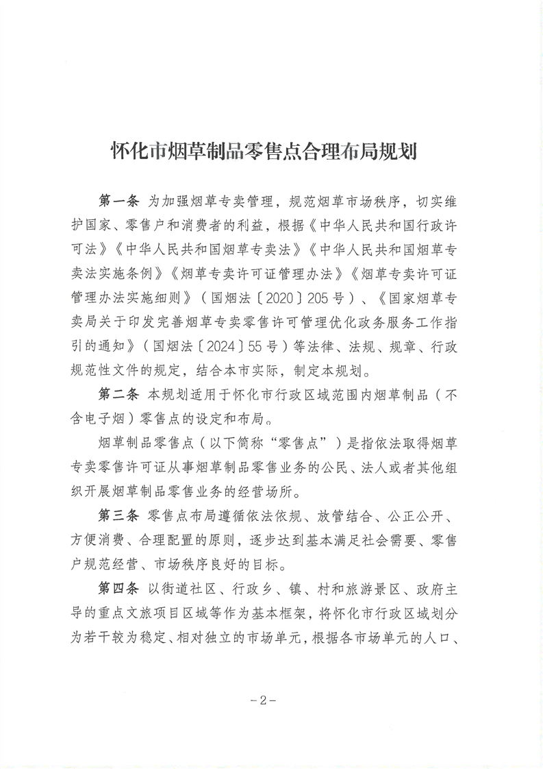 怀化市烟草专卖局关于印发《怀化市烟草制品零售点合理布局规划》的通知