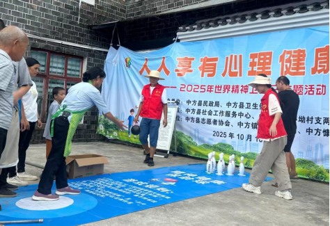 今年10月10日是第34个世界精神卫生日,当天上午由中方县民政局、中方县卫生健康局主办,中方县社会工作服务中心、中方镇炉亭坳村“两委”联合承办的“人人享有心理健康服务”世界精神卫生日主题宣传活动在中方镇炉亭坳村部拉开序幕。