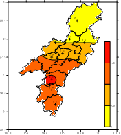 主要气象灾害:7月1日和7月6日我市北中部局地发生暴雨、大暴雨天气,造成部分低洼田地短时被淹、农田水利损毁。其中沅陵7月1日暴雨引发乌宿村山体滑坡造成造成5栋房屋垮塌,死亡2人。7月6日沅陵全县农作物受灾面积17606亩,受灾人口22402人,转移人口1542人,房屋受损160间,公路塌方162处,损坏溪河护岸堤护24处,直接经济损失1495万元,其中水利设施经济损失508万元。