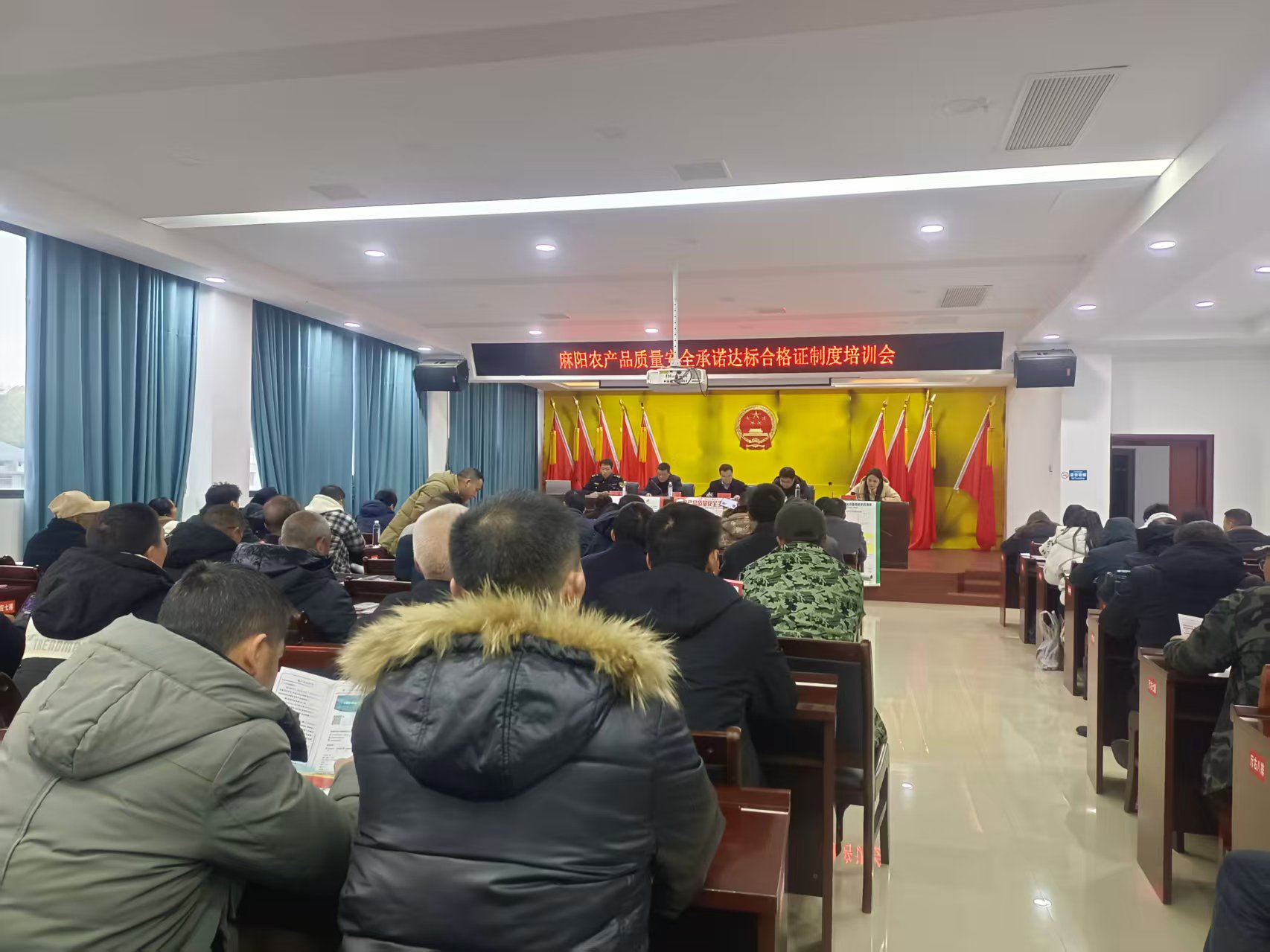 为全面提升农产品质量安全管理水平,推进承诺达标合格证制度落地见效,助力特色农产品品牌建设与市场竞争力提升,1月30日,麻阳县农业农村局组织召开农产品质量安全承诺达标合格证制度培训会议。县农业农村局、市场监督管理局、畜牧水产中心相关负责人,18个乡镇农产品质量安全网格化责任人,以及市级以上农业龙头企业、示范合作社、家庭农场、绿色有机认证企业和县城主要商超负责人共100余人参会。