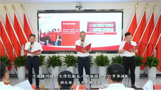 随后,11个单人诵,5个集体诵共16个参赛作品按抽签顺序依次表演。有的选手慷慨激昂地歌颂祖国76年辉煌成就;有的立足本职讲述审计人护航民生资金、服务乡村振兴、防范重大风险的审计故事;还有的聚焦审计初心抒发廉洁从审、无私奉献的职业感悟。派驻沅陵县官庄镇清捷河村工作队的三位老同志,声情并茂地述说着村里的老水井、碣滩茶、农家腊肉和清捷河大桥建成的喜悦,将退休前的坚守幻化成乡村振兴路上的诗行,赢得满堂喝彩。