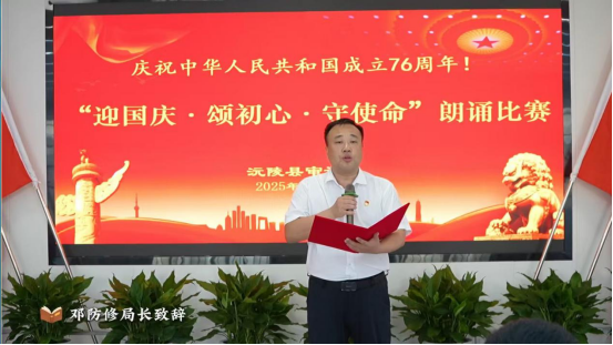 比赛在庄严而热烈的气氛中拉开帷幕。局党组书记、局长邓防修在开场致辞中表示,在举国欢腾、喜迎华诞的美好时节举办主题为“迎国庆、颂初心、守使命”朗诵比赛,既是对伟大时代的礼赞,更是对审计人责任与担当的深情呼唤。他勉励全体审计干部要深刻感悟家国情怀,坚决扛起“为国而审、为民而计”的初心使命,将赛场上的精气神,转化为攻坚克难、干事创业的实际行动。