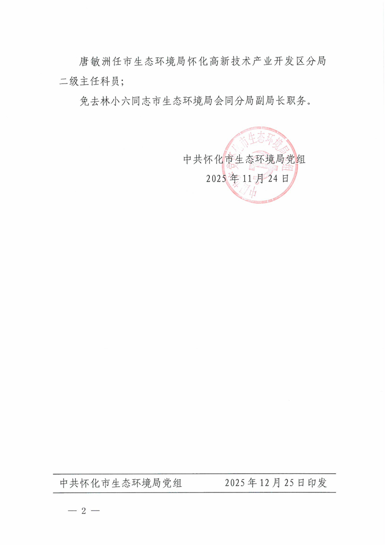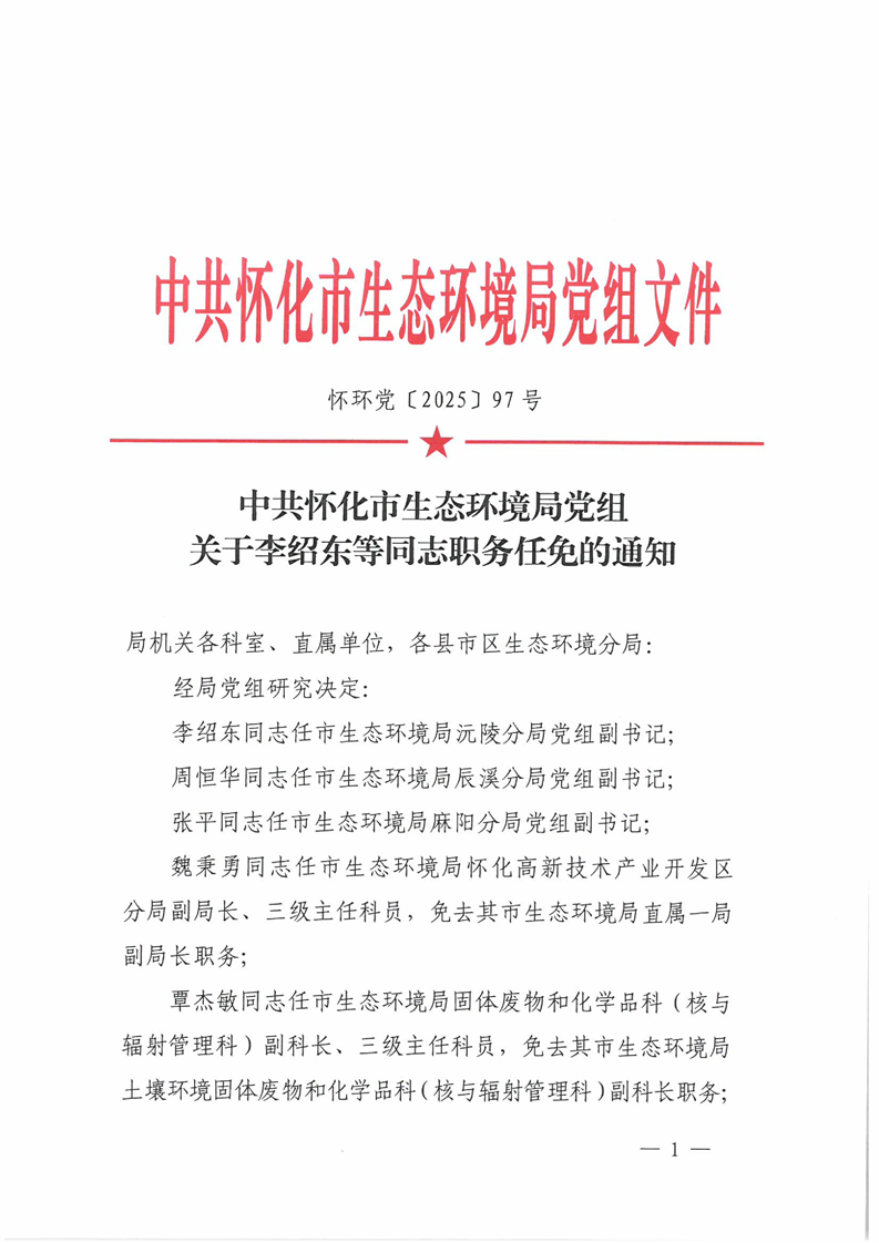 关于李绍东等同志职务任免的通知(怀环党〔2025〕97号)