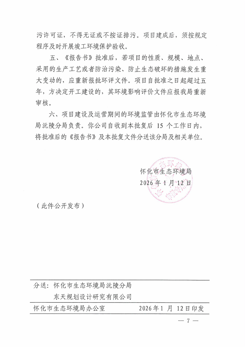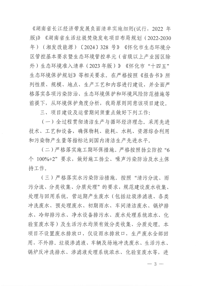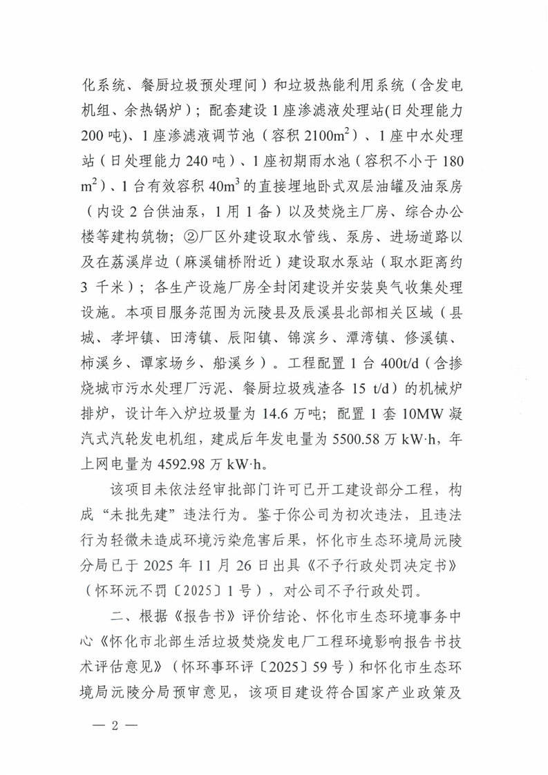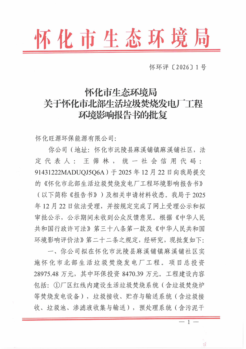 关于怀化市北部生活垃圾焚烧发电厂工程环境影响报告书的批复(怀环评〔2026〕1号)