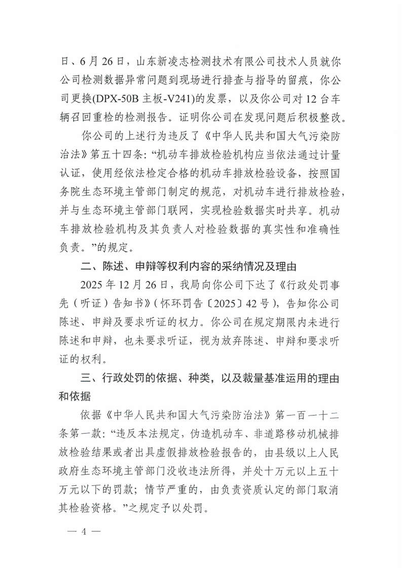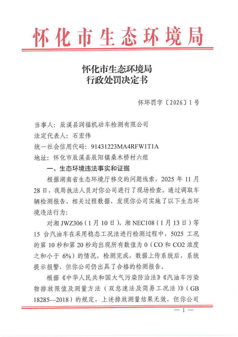 辰溪润福机动车行政处罚决定书(怀环罚字〔2026〕1号)