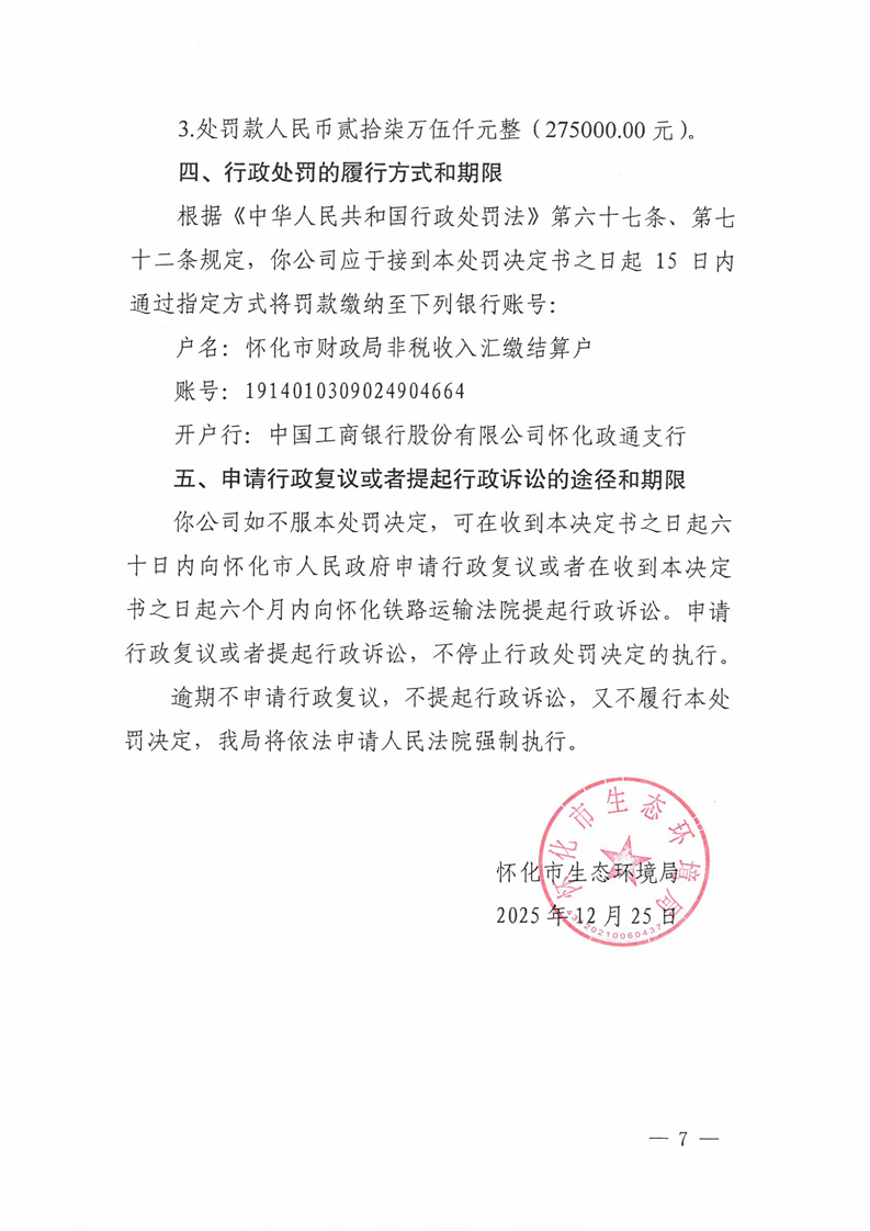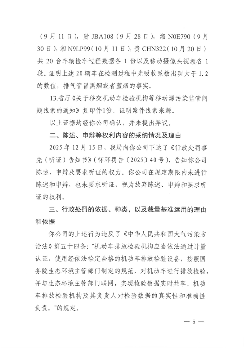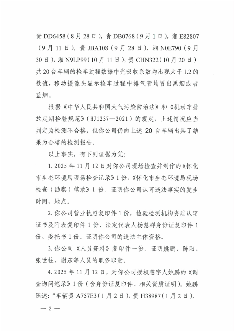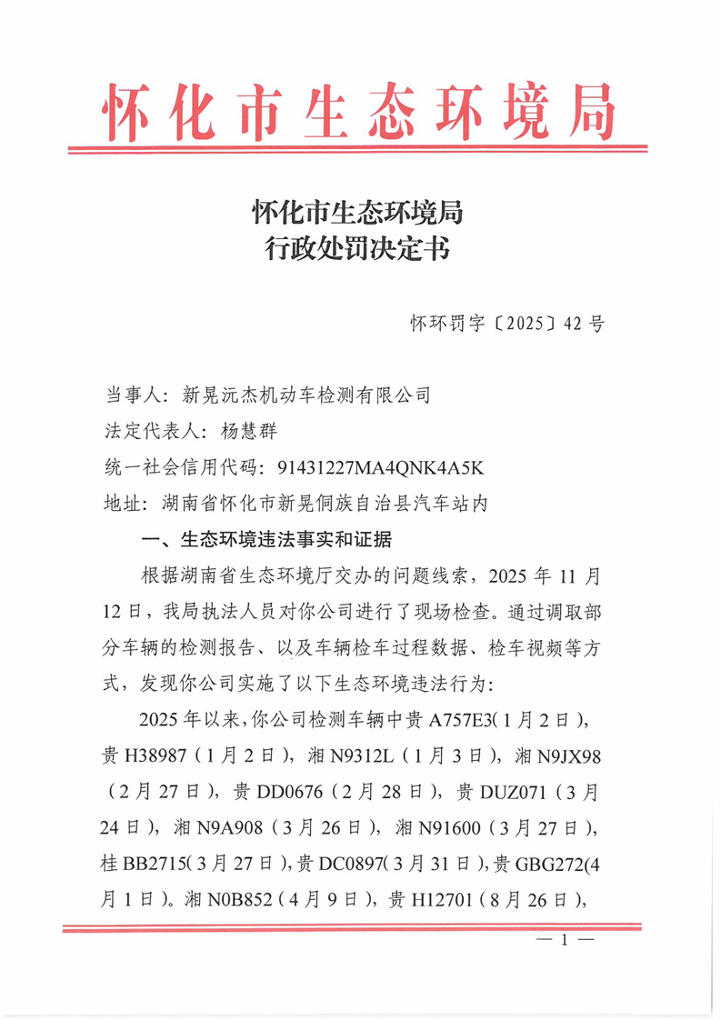 新晃沅杰机动车检测有限公司行政处罚决定书(怀环罚字〔2025〕42号)
