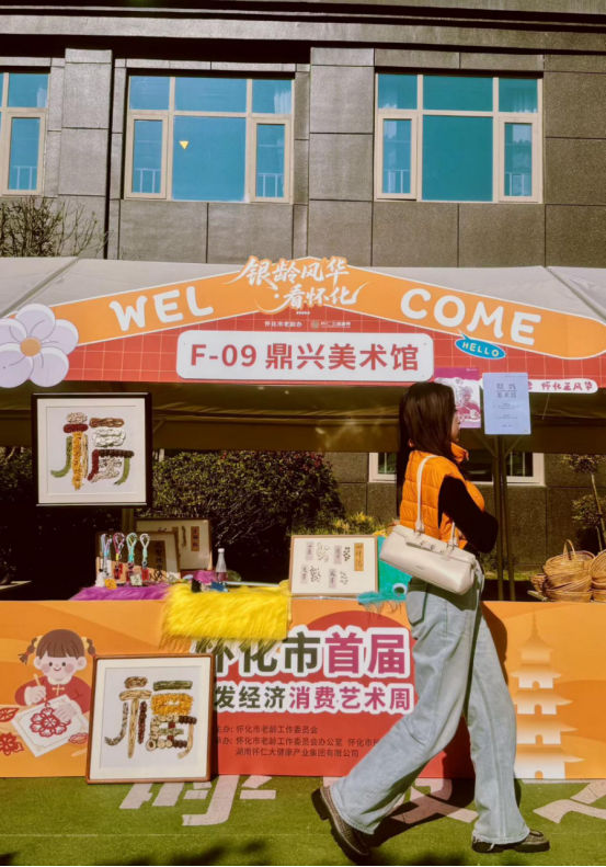 (黄雨竹带着她的文创产品参加怀化银发经济消费艺术周活动)