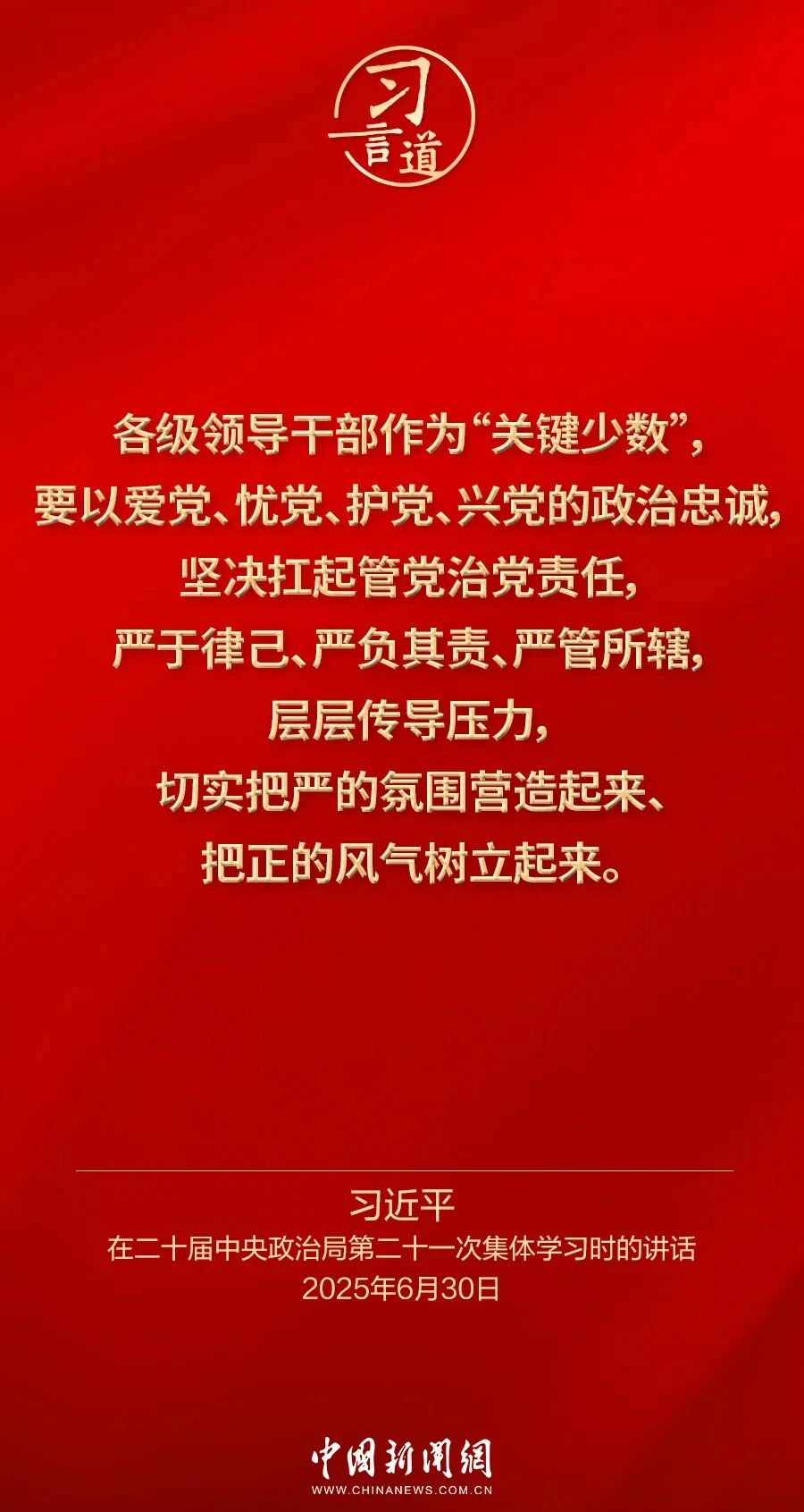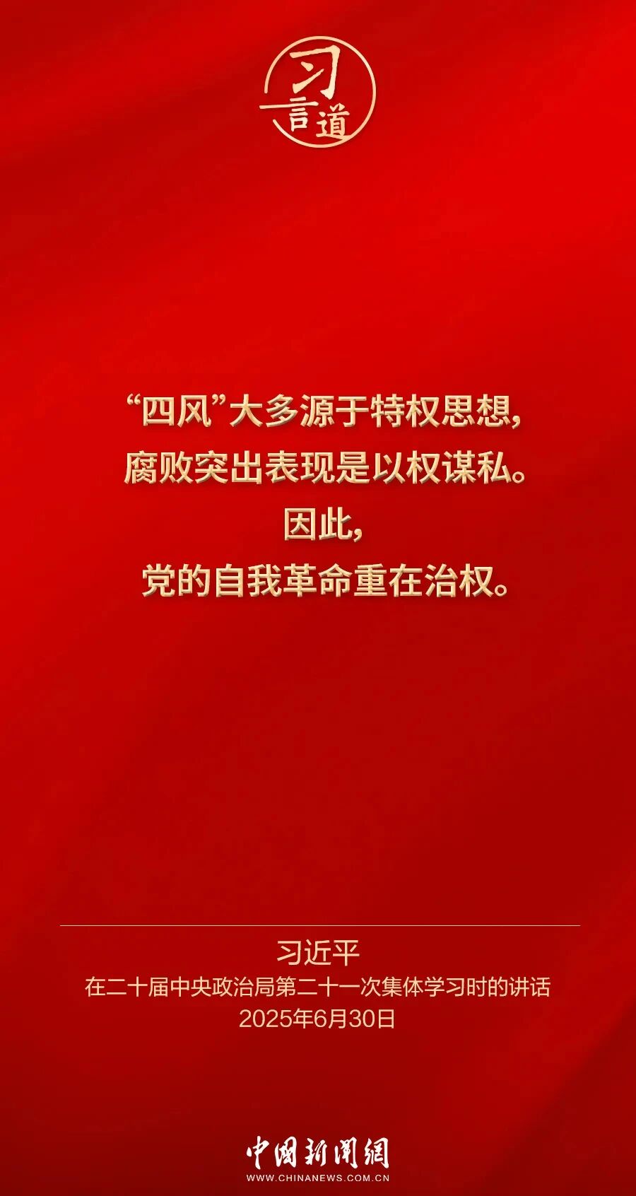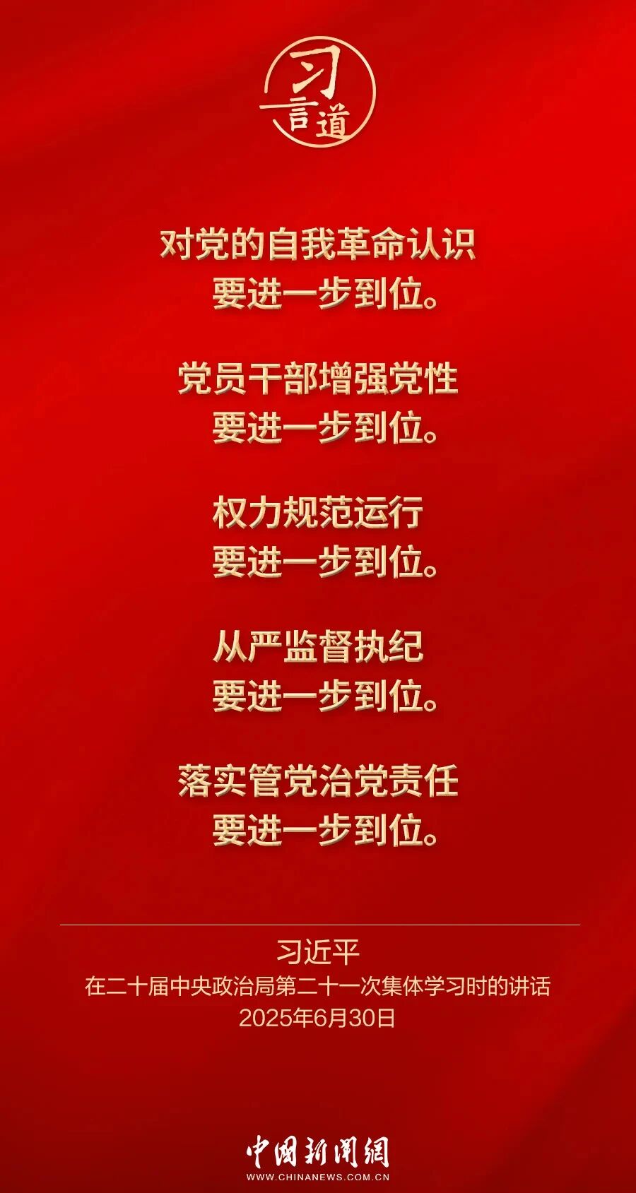 12月1日出版的《求是》杂志发表中共中央总书记、国家主席、中央军委主席习近平的重要文章《推进党的自我革命要做到“五个进一步到位”》。这是习近平总书记2025年6月30日在二十届中央政治局第二十一次集体学习时讲话的主要部分。我们梳理了总书记的部分论述,邀您一起学习领悟。