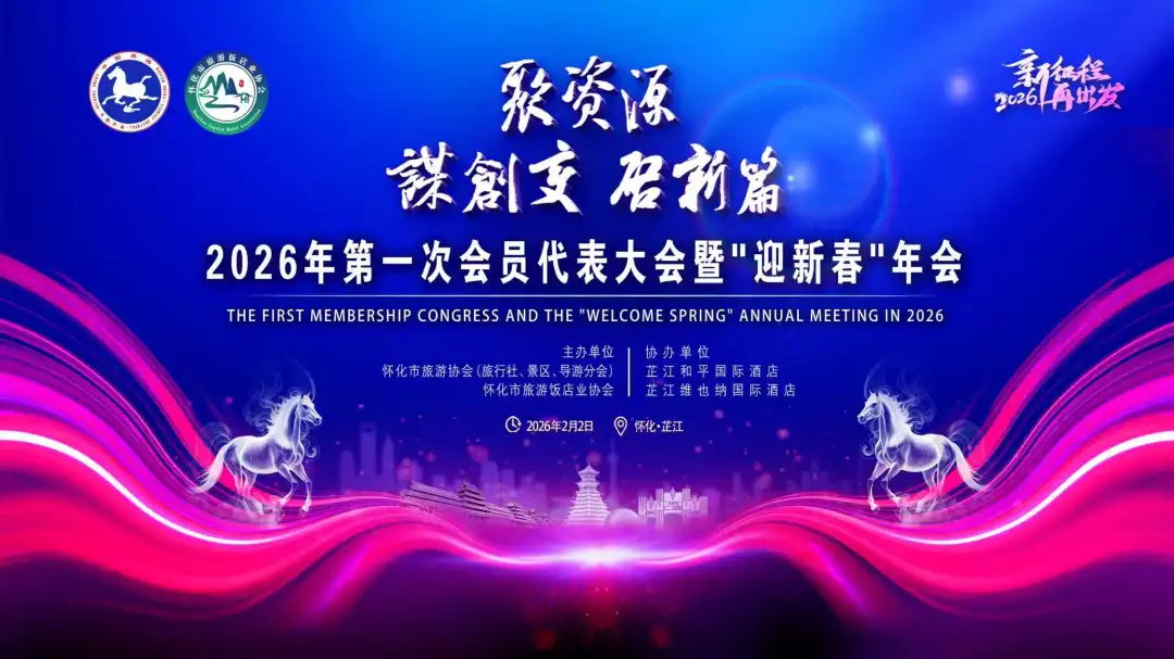 2026年2月2日至3日,怀化市旅游协会(第四届)与怀化市旅游饭店业协会(第五届)在芷江侗族自治县联合举办2026年度第一次会员代表大会暨“迎新春”年会。来自全市旅游景区、旅行社、旅游饭店、导游等领域的会员代表,以及相关政府部门、行业协会负责人等共计200余人齐聚一堂,共商文旅发展大计,共谋行业融合新篇。