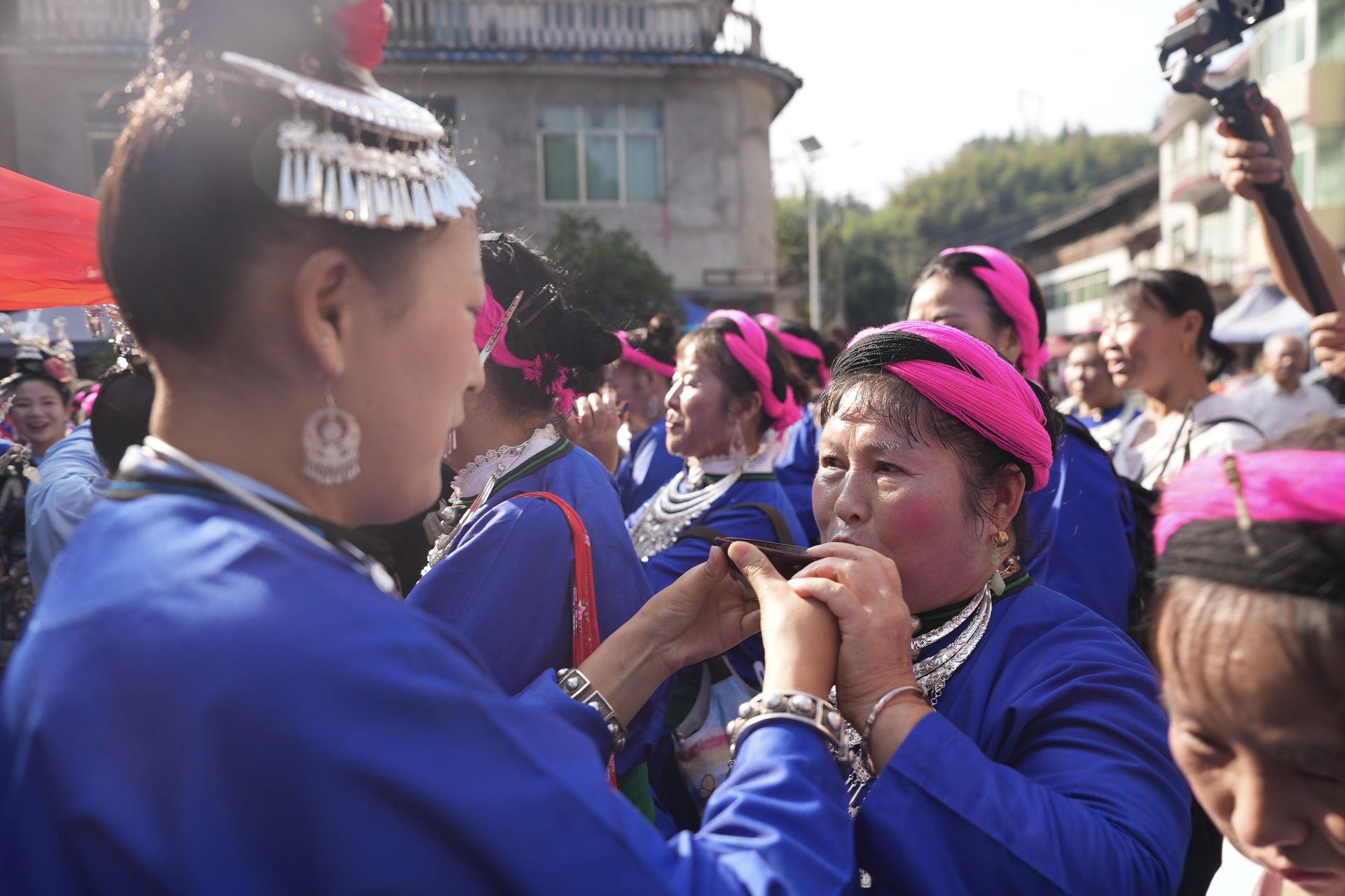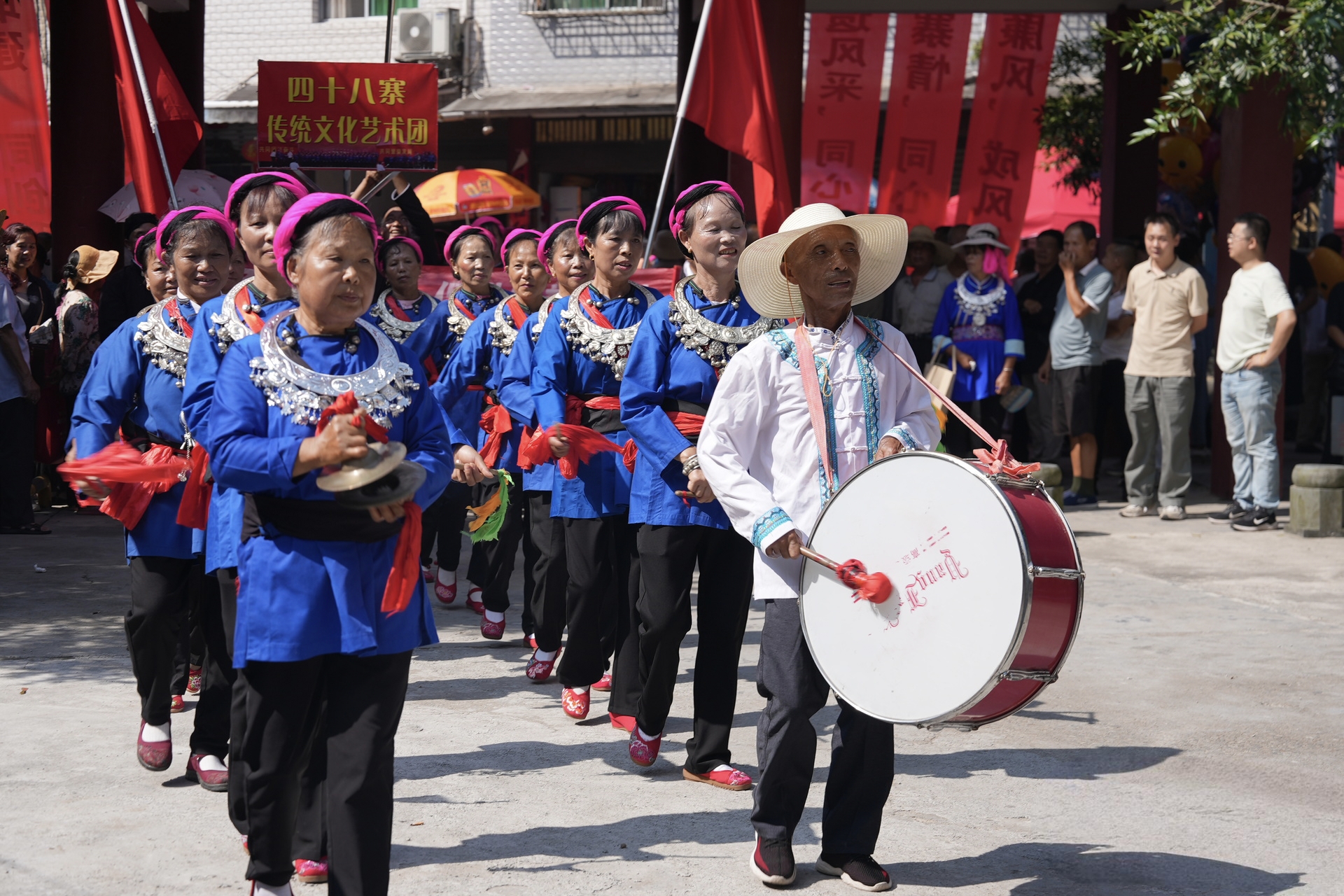“两省三县一家亲,苗侗人民心连心,今逢太平歌盛世,非物质文化遗产共传承。”活动开场,岩湾百年歌场门头处,身着民族服饰的村民唱着敬酒歌迎接宾客。踏入歌场,“四十八寨”赶歌场舞台表演精彩上演,山歌婉转悠扬,舞蹈灵动欢快,台下观众沉浸其中。
