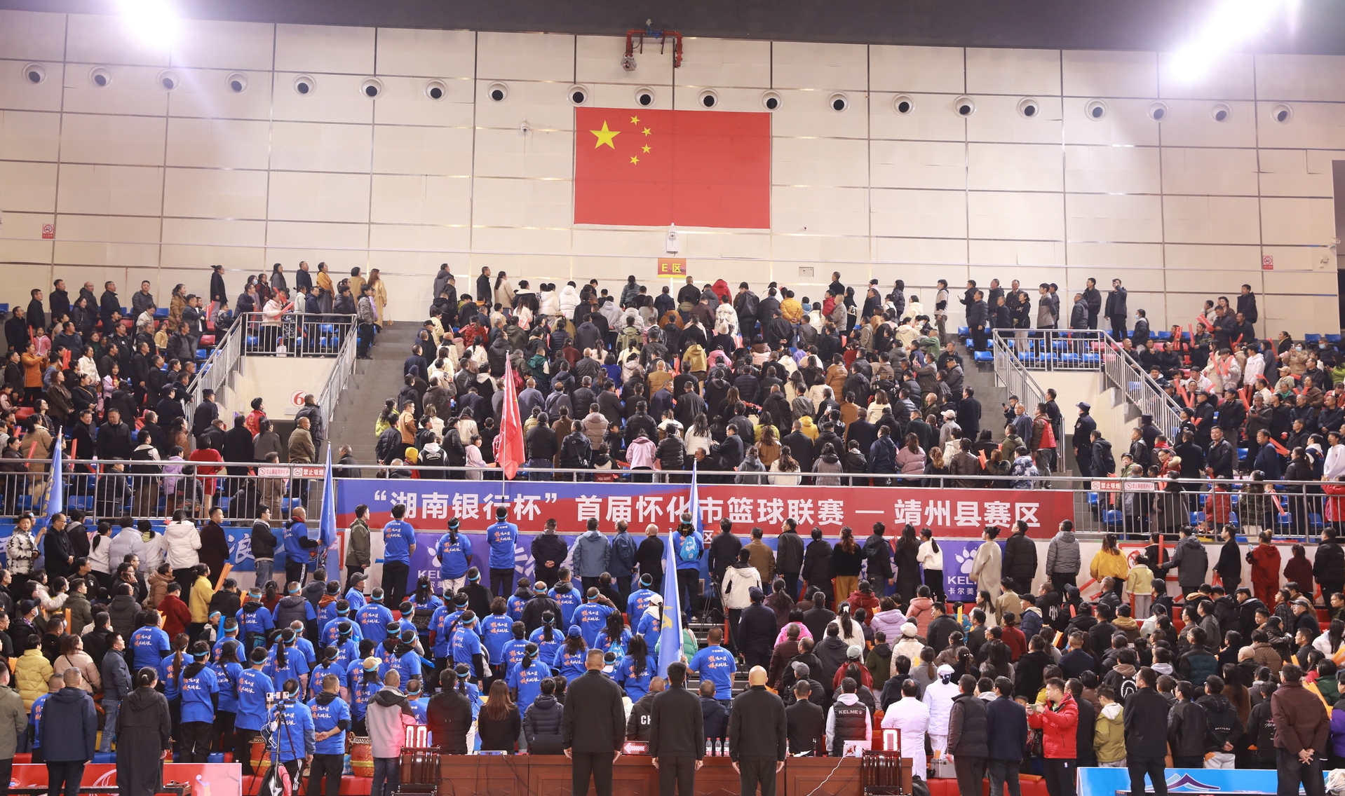 12月14日晚,靖州苗族侗族自治县民族体育馆篮球馆内灯火璀璨、人声鼎沸,“怀BA”篮球联赛靖州赛区主场首场比赛正式开赛,靖州队与鹤城区队同台竞技,4000余名观众到场观战,共同见证这场体育与文化交融的盛会。