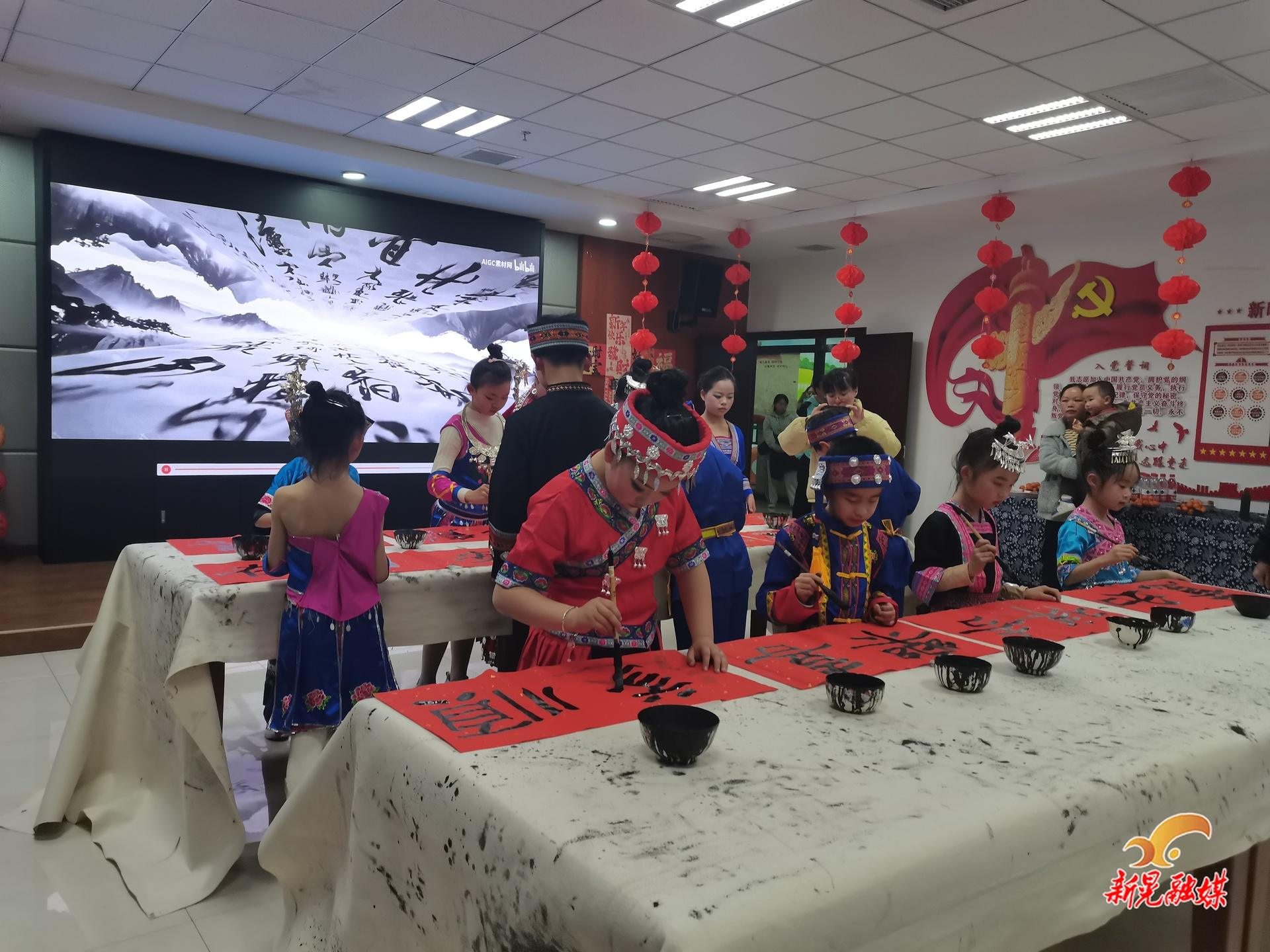 活动中,有奖竞猜与抽奖环节轮番登场,现场掌声、欢笑声此起彼伏。书法学员们挥毫泼墨,一幅幅笔锋遒劲的书法作品跃然纸上;分馆特色工作分享则展现了基层文化服务的鲜活实践。展演尾声,歌舞《三语颂新年·欢歌聚一堂》将氛围推向高潮。此次展演以文化为媒,不仅丰富了市民的精神文化生活,更凝聚起侗乡文化传承与发展的蓬勃力量。