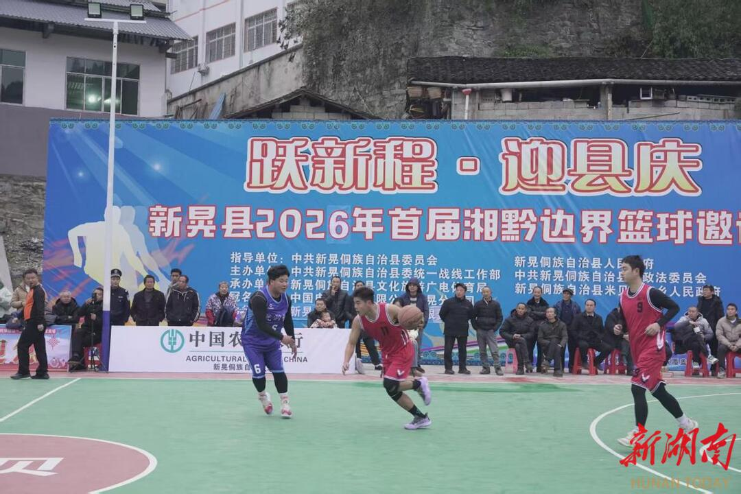 1月5日,“跃新程·迎县庆”新晃首届湘黔边界篮球邀请赛在该县米贝苗族乡文体广场开幕。