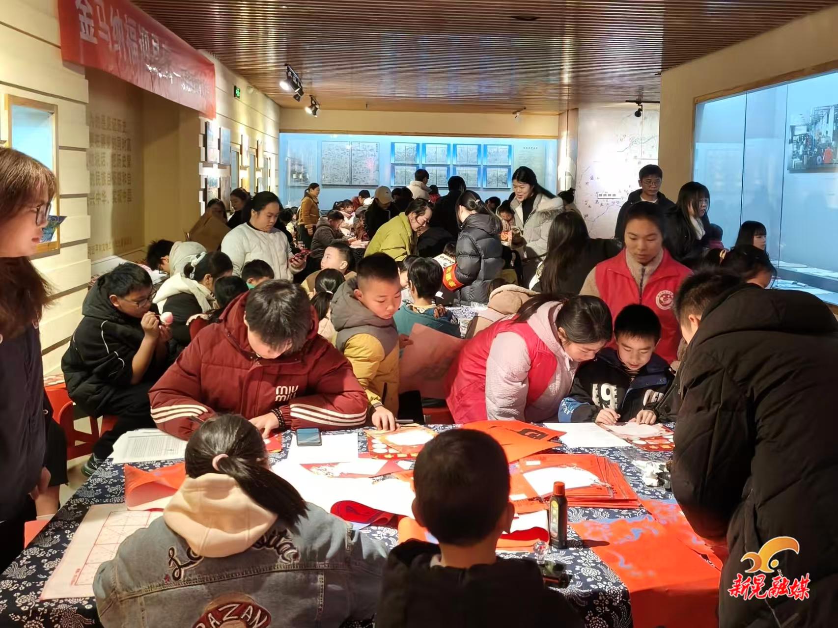 写春联区里红纸铺展、墨香萦绕,书法爱好者们一同提笔挥毫,将新春的美好祈愿凝于笔端,一副副对仗工整、寓意吉祥的春联跃然纸上,年味儿在笔墨间愈发浓郁。