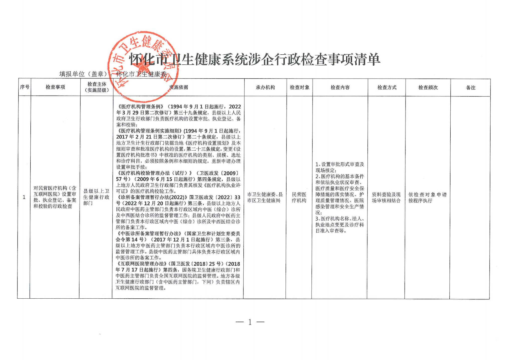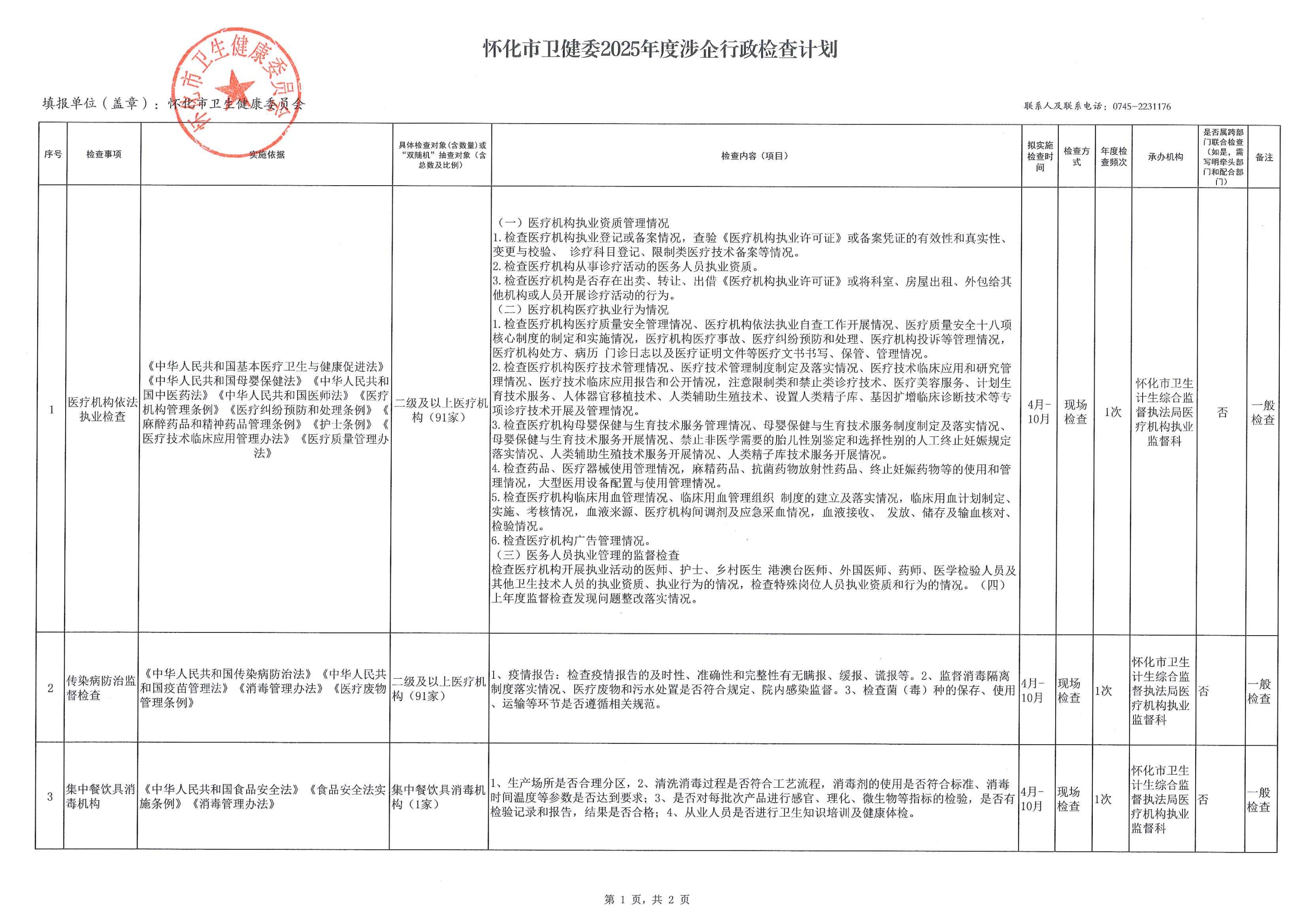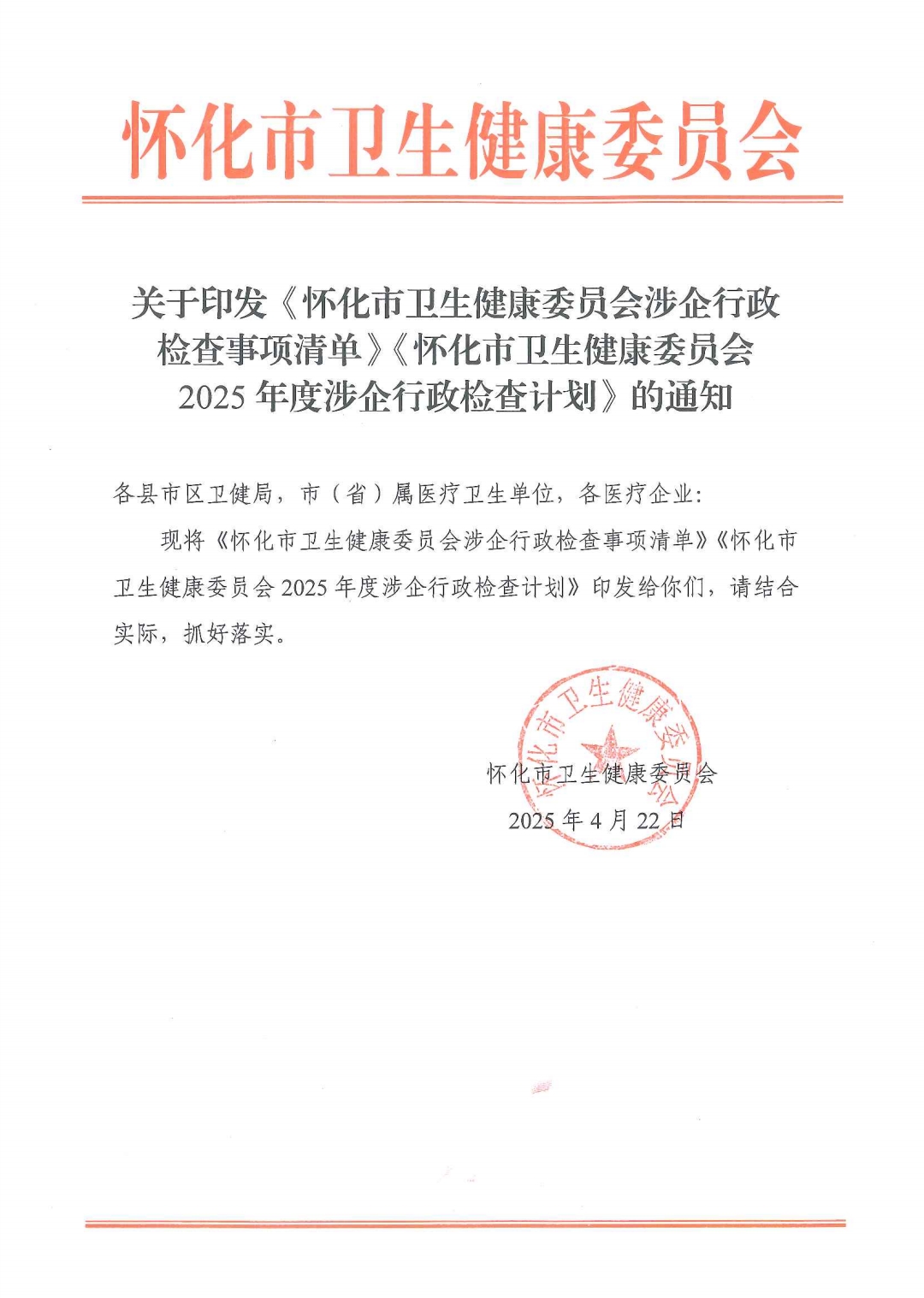 关于印发《怀化市卫生健康委员会涉企行政检查事项清单》《怀化市卫生健康委员会2025年度涉企行政检查计划》的通知