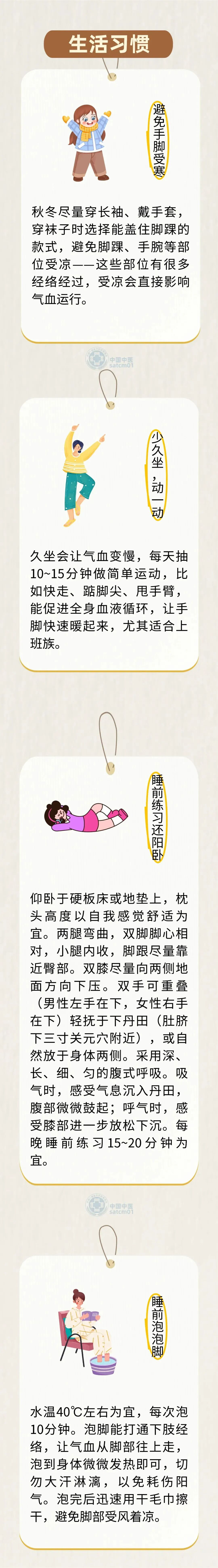 秋冬季节气温下降,不少人会出现手脚冰凉的情况,即使穿再多衣服,手脚也难捂热,甚至伴随怕冷、易疲劳、精神不振等问题。从中医角度来看,这多与阳气不足、气血不畅密切相关,通过针对性调理可有效改善。
