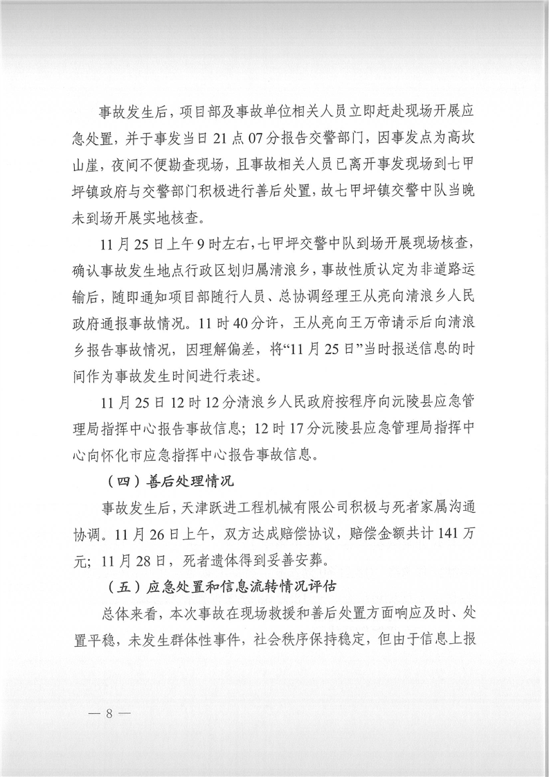 怀化沅陵G59张官段Ⅱ标天津跃进工程机械有限公司“11·24”一般车辆伤害事故调查报告