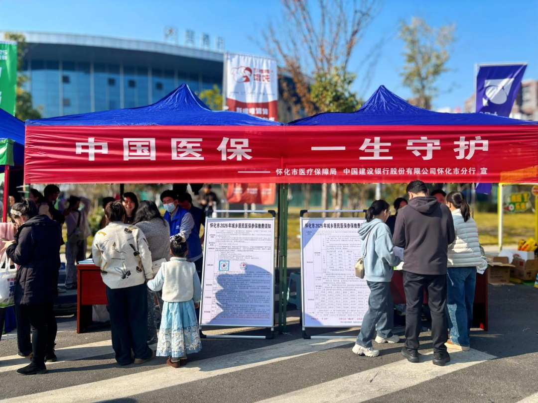 赛场外,工作人员手持宣传资料,热情地向入场观众和往来市民讲解怀化市2026年城乡居民医保参保缴费须知、职工医保“三重保障”待遇图解以及电子凭证激活、异地就医备案等热点政策。“手机直接就能办!”“一定要记得按时参保!”的提醒声此起彼伏,吸引不少人驻足。