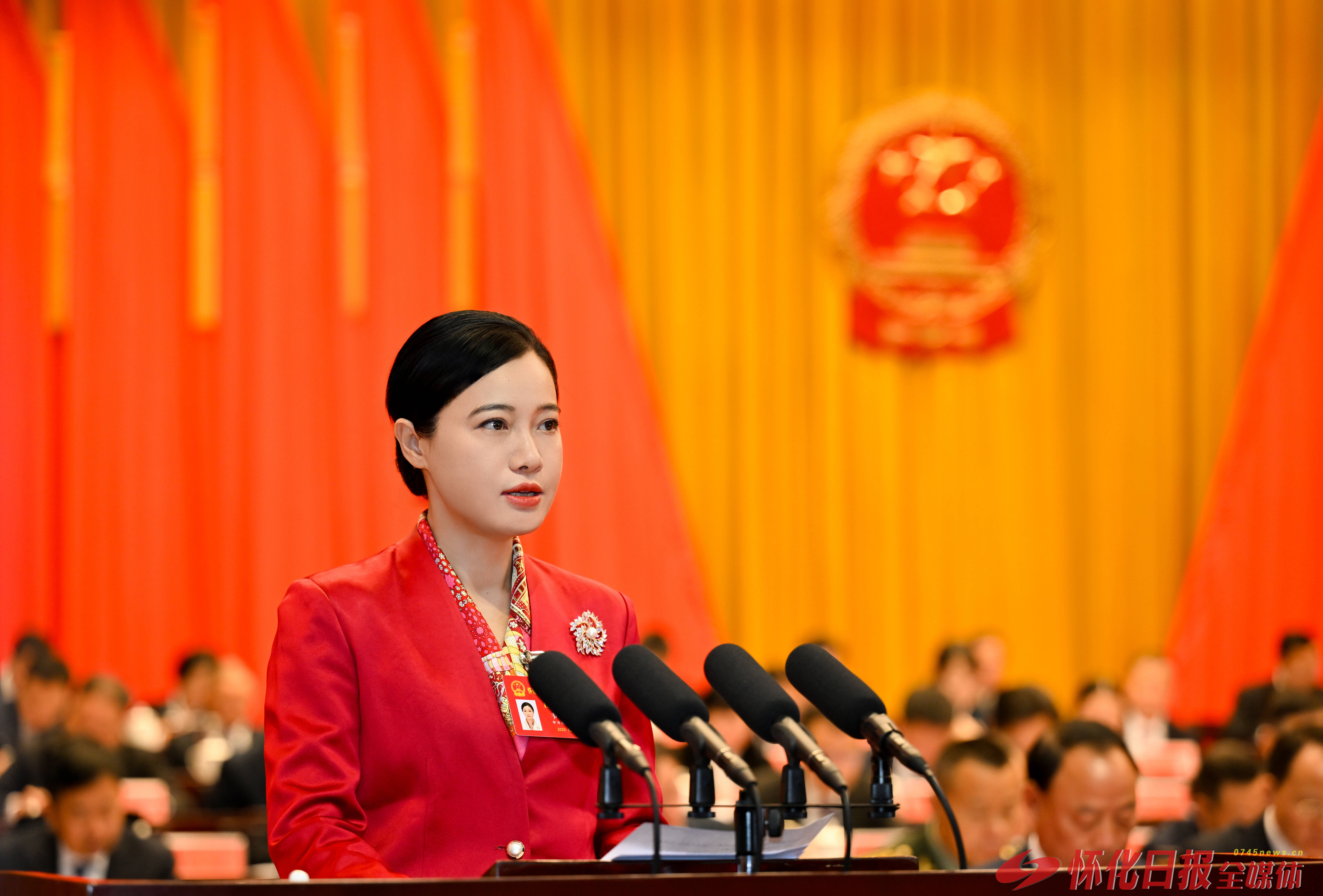 (代市长韦朝晖代表市人民政府作工作报告。以上照片均由怀化日报全媒体记者 杨智伟 潘雨 吴涛 摄)