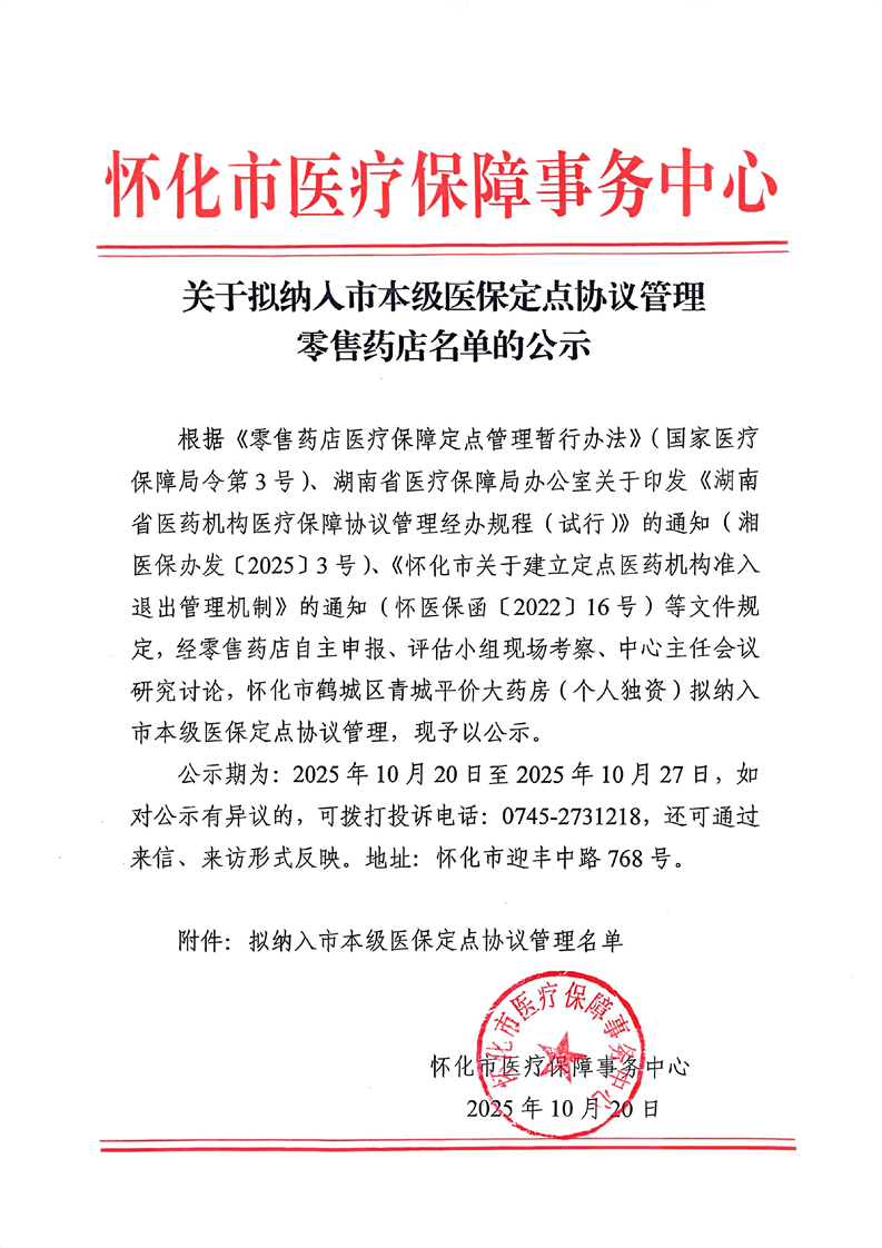 关于拟纳入市本级医保定点协议管理零售药店名单的通知