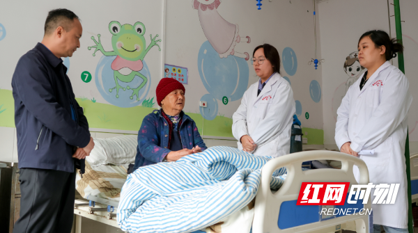 沅陵县第三人民医院(麻溪铺镇中心卫生院),院长肖建忠带领医护人员看望病人。邓浩然 摄影